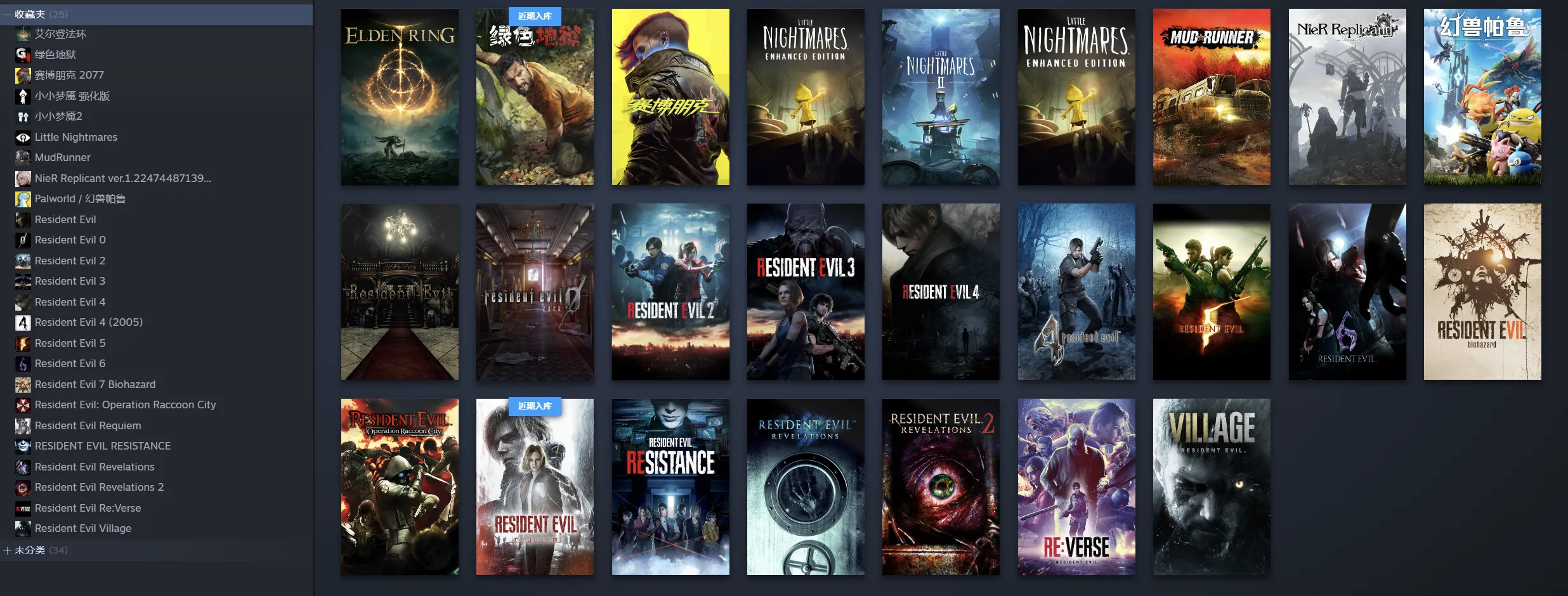 生化危机9安魂曲(:Resident Evil Requiem)、生化危机4重置版/生化危机2023(Resident Evil 4)、生化危机8:村庄/生化危机村庄 Resident Evil Village、生化危机:逆转/生化危机逆转 Resident Evil Re:Verse、旋转轮胎:泥泞奔驰 Spintires®mudrunner、赛博朋克2077 Cyberpunk 2077、小小梦魇2/小小噩梦2、艾尔登法环、老头环/上古之环(Elden Ring)、小小梦魇1/小小噩梦 Little Nightmares、尼尔:伪装者 NieR Replicant™ ver.1.22474487139...幻兽帕鲁(Palworld)