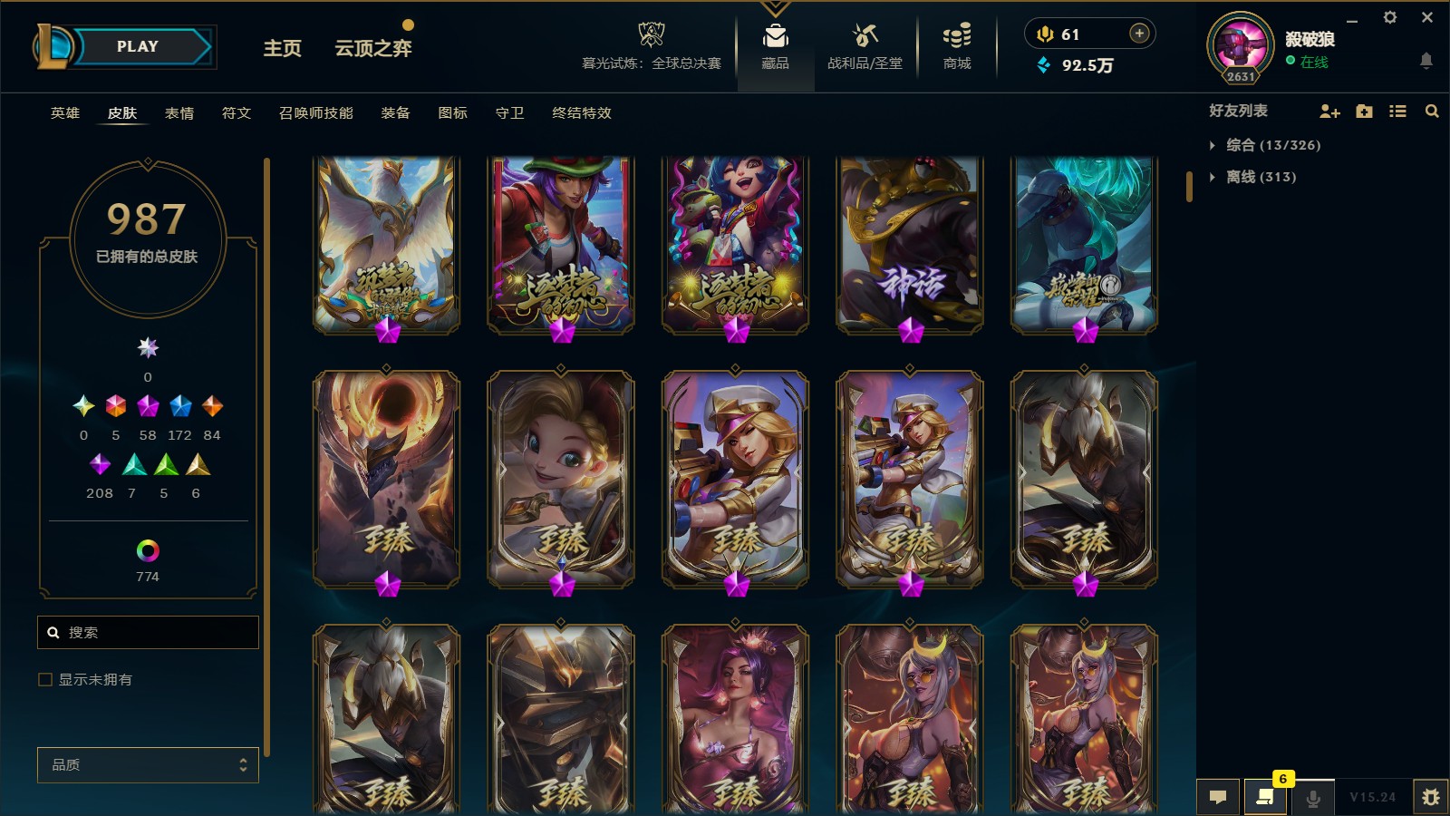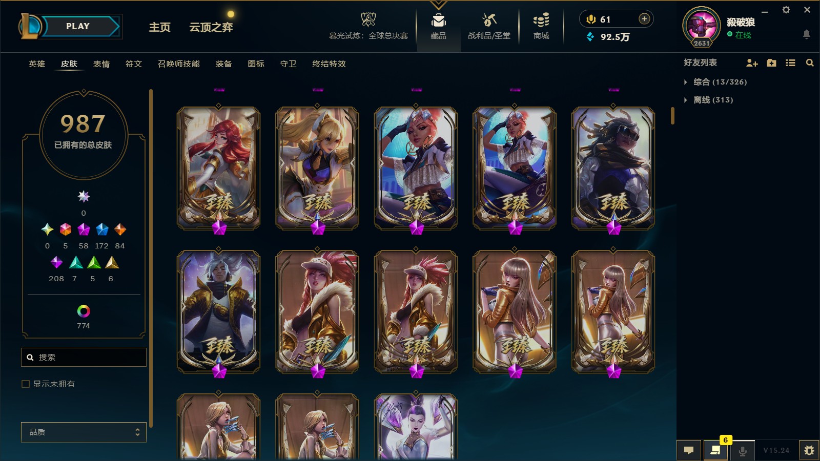 - 臻彩皮肤数量: 43