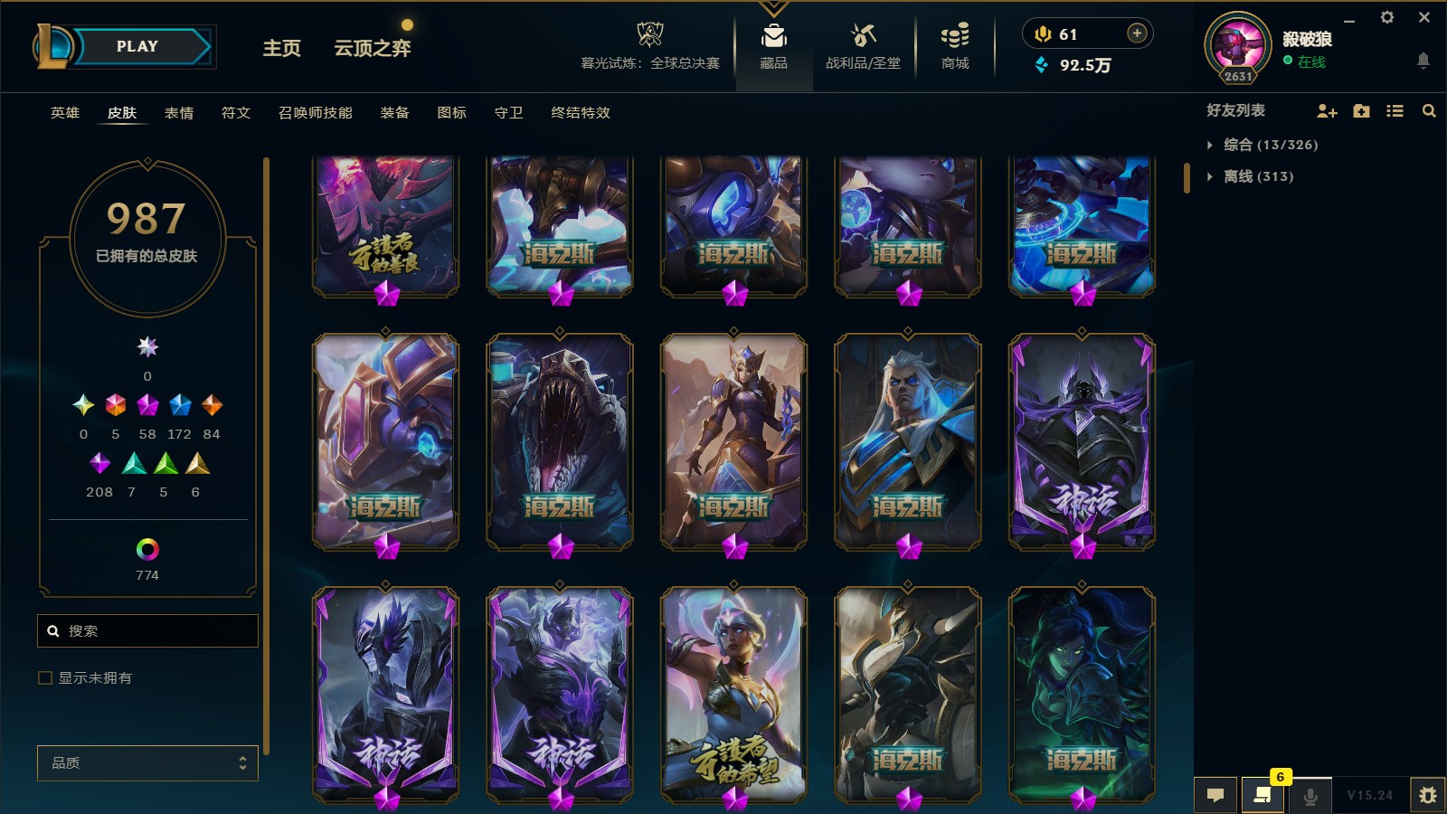 - 神话皮肤数量: 58
