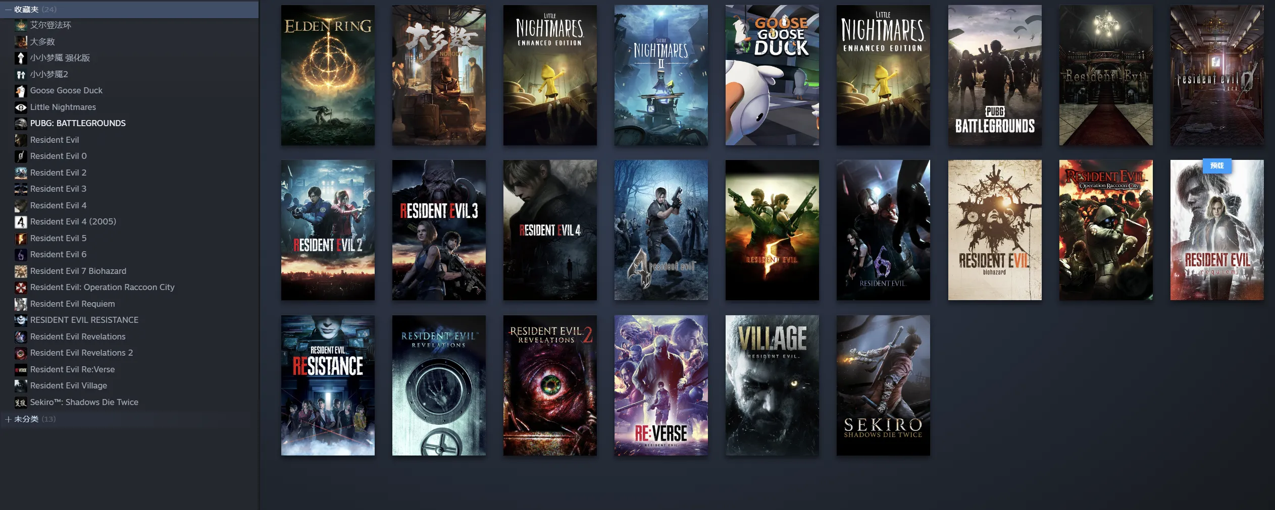 生化危机9安魂曲、全系列(生化危机0+1+2+3+4+5+6+7+8+9)、大多数、艾尔登法环、只狼