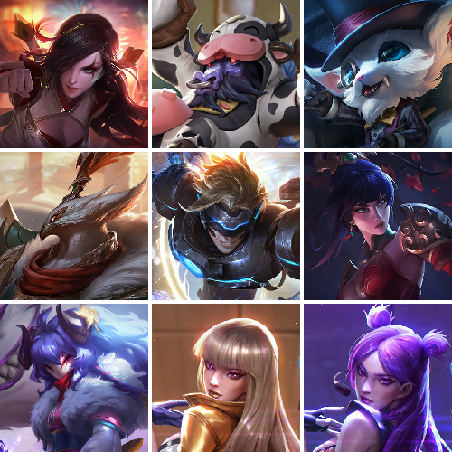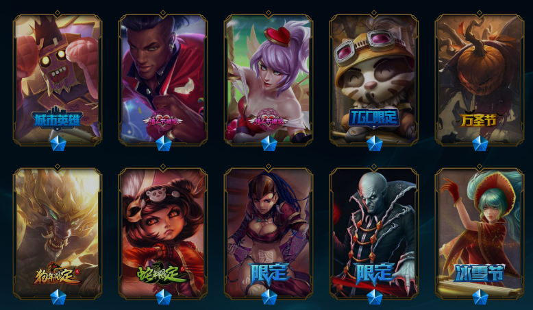 【600原皮肤】至臻阿狸、海克斯鳄鱼、海克斯火女、马年皎月、司马懿、电玩阿狸、电玩锐雯、龙年猴子、龙琴、虎痴之拳、猴年猴子、蛇年火女、狗年狼人、猴年莫甘娜、斩星魔剑、灵魂守卫、未来战士EZ、冰雪节卡尔玛、万圣节莫甘娜、万圣节豹女、觅心游侠、觅心之翼、胜利女神莫甘娜、甜心宝贝安妮、万圣节人马、勇者阿狸、暗星锤石、屠龙勇士潘森、貂蝉、弹幕天使卡莎、关羽、披着海牛的狼、星守女枪、玉剑传说风女、战斗学院杰斯、K/DA卡莎