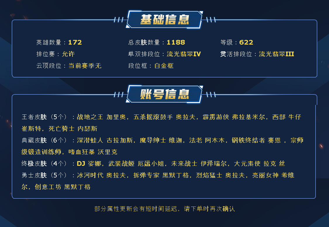【622原皮肤230炫彩皮肤】摄魂VN、海克斯阿木木、海克斯人马、海克斯鳄鱼、海克斯大嘴、黎明使者卡尔玛、暗星大虫子、牛年安妮、王国机神武器、勇敢的心诺手、马年皎月、蛇年蛇女、狗年光辉、狗年狼人、电玩阿狸、电玩锐雯、定海神珍、虎痴之拳、蛇年火女、羊年金克丝、花木兰、龙年大嘴、张辽、源计划鳄鱼、穿星魔锋、斩星魔剑、暗星尊烬、暗星卡尔玛、黑夜使者吸血鬼、黑夜奶妈、黎明奶妈、西部寒冰、战斗学院EZ、真实伤害艾克、月蚀骑士日女、灵魂莲华亚索、太空律动格温、五杀摇滚佛耶戈、源计划韦鲁斯、战斗学院永恩、正义之枪卢锡安、K/DA ALL OUT阿卡丽、大元素使、武装战姬、DJ、冠军之箭、冠军之隐、冰雪节老鼠、破空枪骑、御星魔矢、奥德赛凯隐、黑夜亚索、神拳、神王诺手、天煞劫、屠龙勇士潘森、西部魔影卢锡安、星守霞、源计划派克、源计划VN、源计划寒冰、奥德赛卡兹克、奥德赛亚索、貂蝉、地狱火阿木木、地狱火韦鲁斯、黎明豹女、魔女卡蜜尔、魔女丽桑卓、千纸凤凰、泰隆黑木、西部锤石、西部诺手、小蜜蜂提莫、玉剑传说莫甘娜、源计划蔚、源计划烬、源计划刀妹、战斗教授男枪、战斗学院拉克丝、战斗学院卡特琳娜
