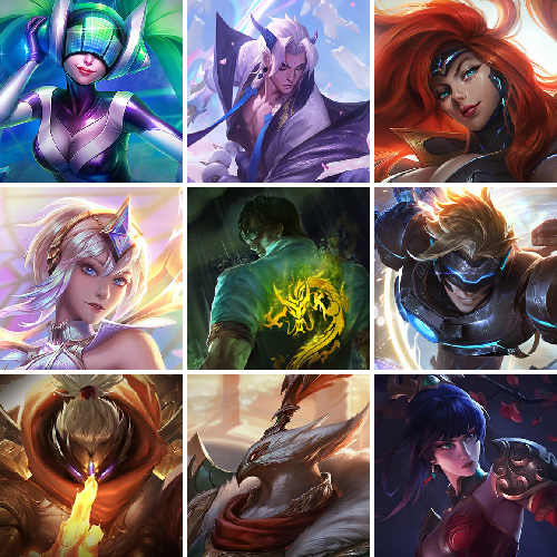 【695原皮肤145炫彩皮肤】万圣节提莫、征服者卡尔玛、真实伤害艾克、灵魂莲华永恩、神龙尊者炎龙瑟提、大元素使、武装战姬、DJ、海克斯诺手、新创战纪希维尔、龙瞎、司马懿、勇敢的心诺手、安妮梦游仙境、狗年狗头、狗年光辉、狗年狼人、蛇年蛇女、蛇年飞机、电玩阿狸、周年阿狸、电玩女枪、周年女枪、大魔王提莫、征服者卡尔玛、真实伤害艾克、灵魂莲华永恩、神龙尊者炎龙瑟提、大元素使、武装战姬、DJ、灵魂守卫、未来战士EZ、创战纪希维尔、电玩人马、冠军之隐、惊悚派对稻草人、克格汪、万圣节莫甘娜、觅心女王、魄罗骑士、庆典女皇、甜心之翎洛、情人节洛、甜心之羽霞、情人节霞、万圣节人马、勇者阿狸、FNATIC全套、暗星锤石、奥德赛凯隐、黑夜亚索、神拳、屠龙勇士潘森、星之守护者金克丝、源计划寒冰、源计划VN、貂蝉、超级英雄凯南、德玛西亚警官盖伦、地狱火韦鲁斯、关羽、吕布、魔女妖姬、未来战士女警、武神、孙尚香、玉剑传说剑圣、赵云、咖啡甜心奶妈索拉卡