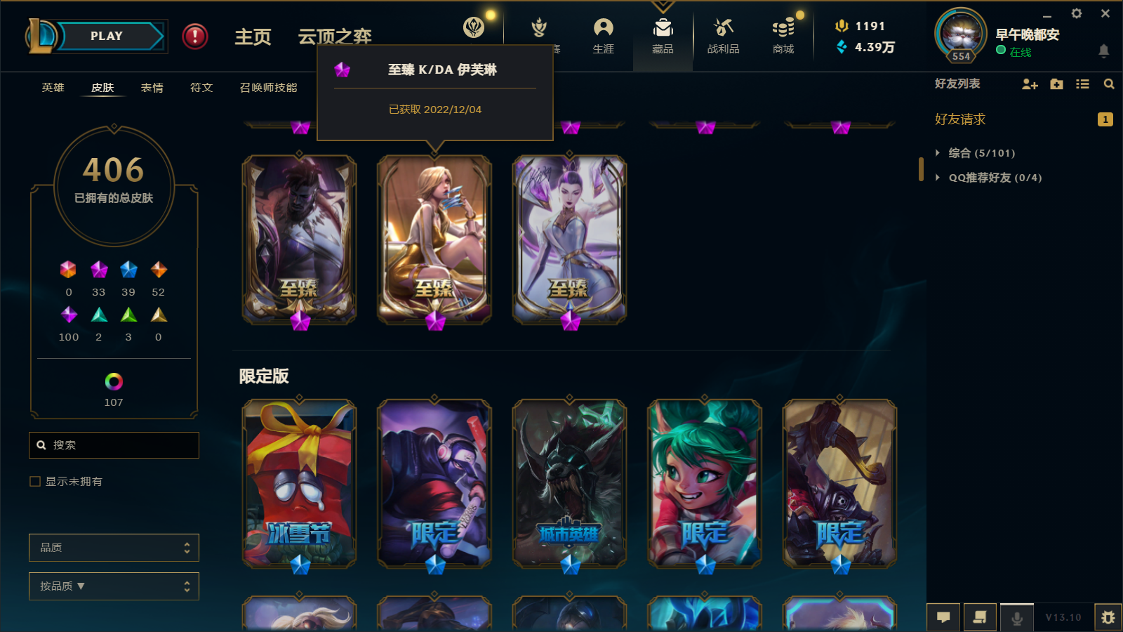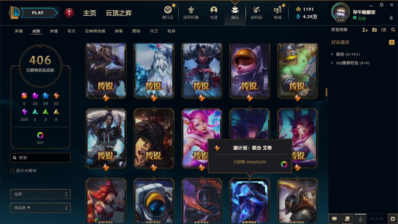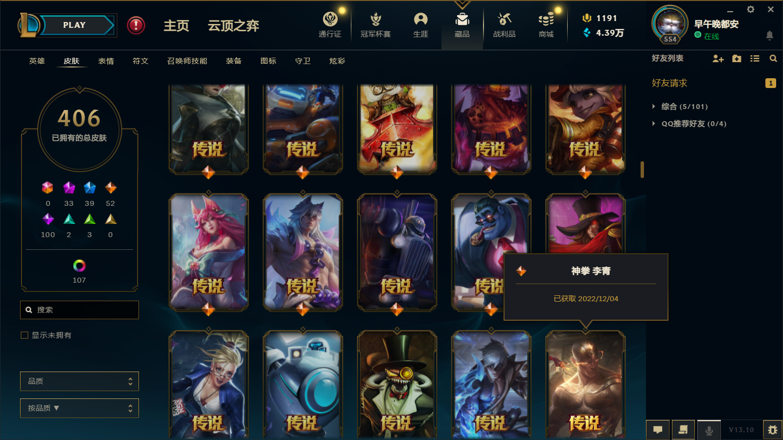 1600皮肤〓71至臻海克斯〓恐惧〓觅心萝莉〓EDG男枪〓神拳瞎神王盖伦〓西部魔影奥巴马