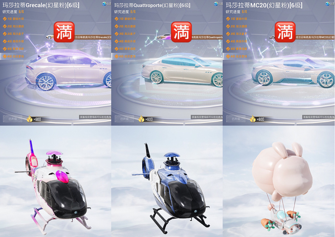 【安卓】 56载具3飞机⭐三台满级幻星粉玛莎⭐三色螳螂⭐114粉装⭐52把特效枪⭐木乃伊⭐金玛莎⭐小丑