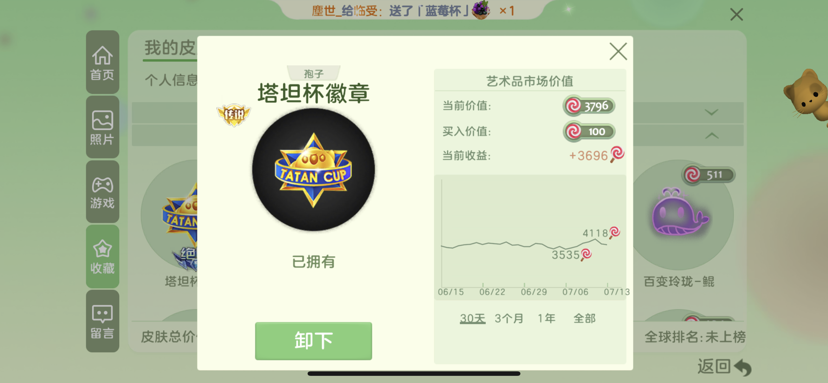 【全平台】 极品金色塔坦杯⭐满赛季内吐号⭐整年年卡大手子必备