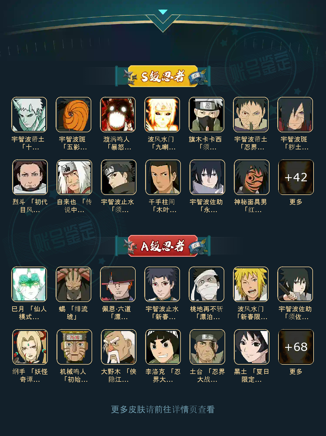 55S 十尾人柱力带土🔥5星鸣佐❤️五影会谈斑 妖怪纲手 金水门🔥漂泊小南 六尾鸣人🔥夏日黑土秽土再不斩🔥传说自来也❤️须佐卡卡西❤️舍人❤️须佐止水❤️漂泊忍者多🥇全尾兽通灵