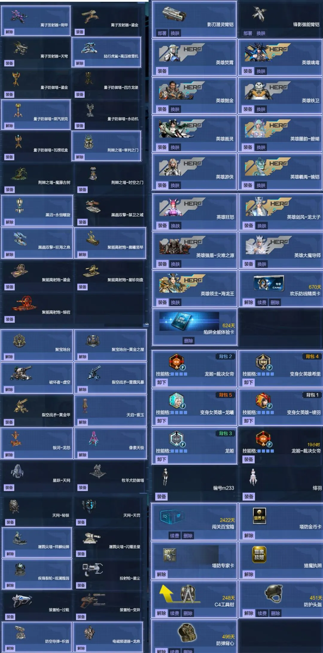 【塔防全英雄 三连携臂铠 双龙曦 皮肤多】