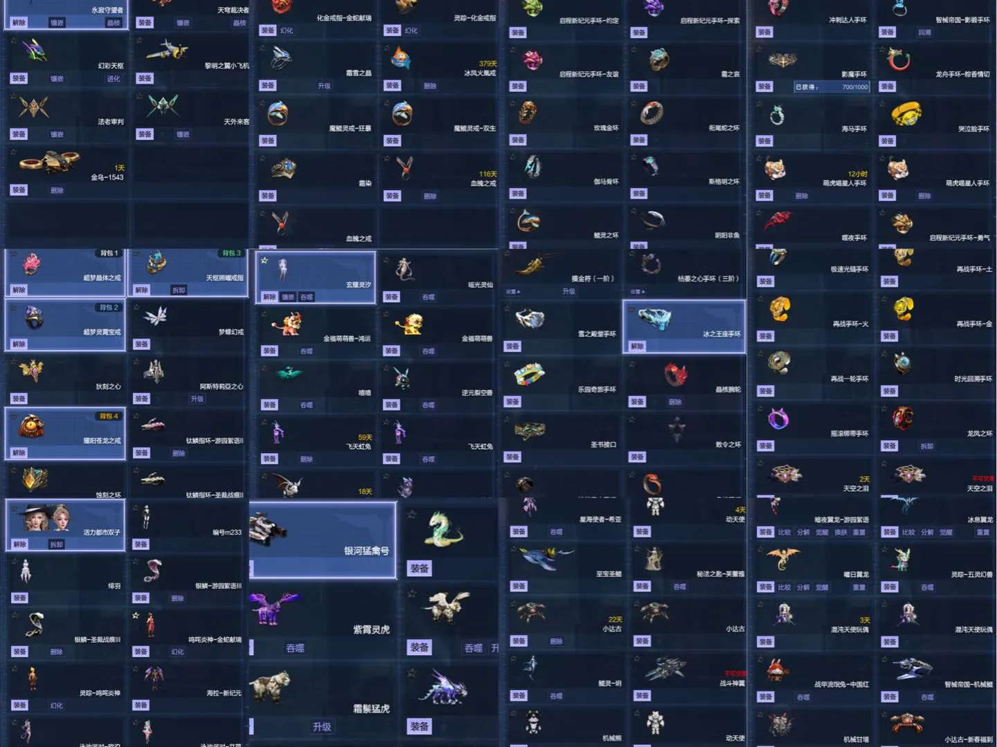 2025.1.16更新星寰套 四核心 组成9➕9星寰山海套 造化天羽 凤栖神之-雷泽 冰雪手环两件套