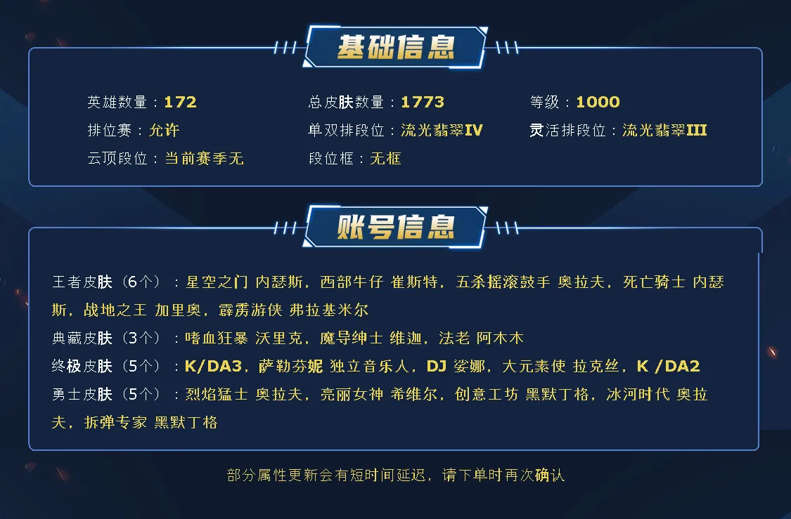【如遇冻结】请耐心等待三五分钟后重新上号试试 若还不行再撤单 感谢老板耐心配合