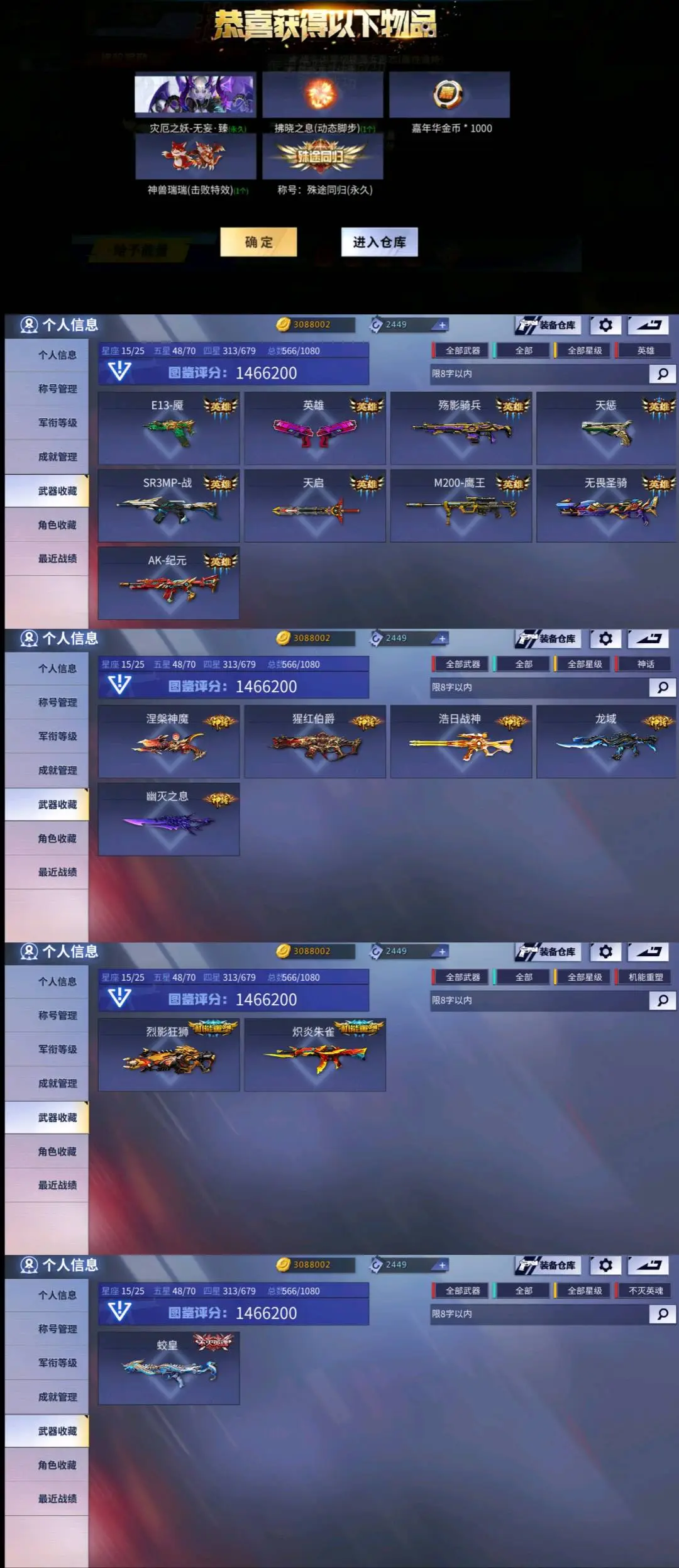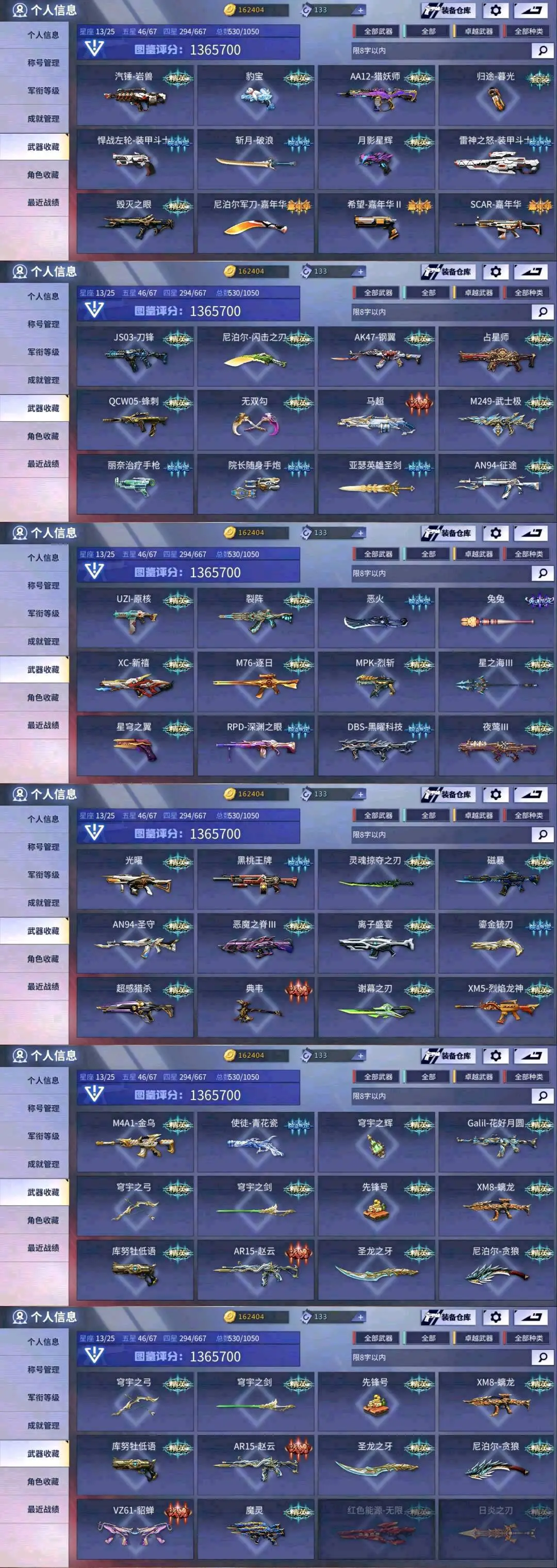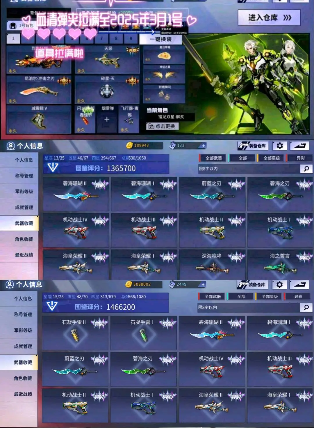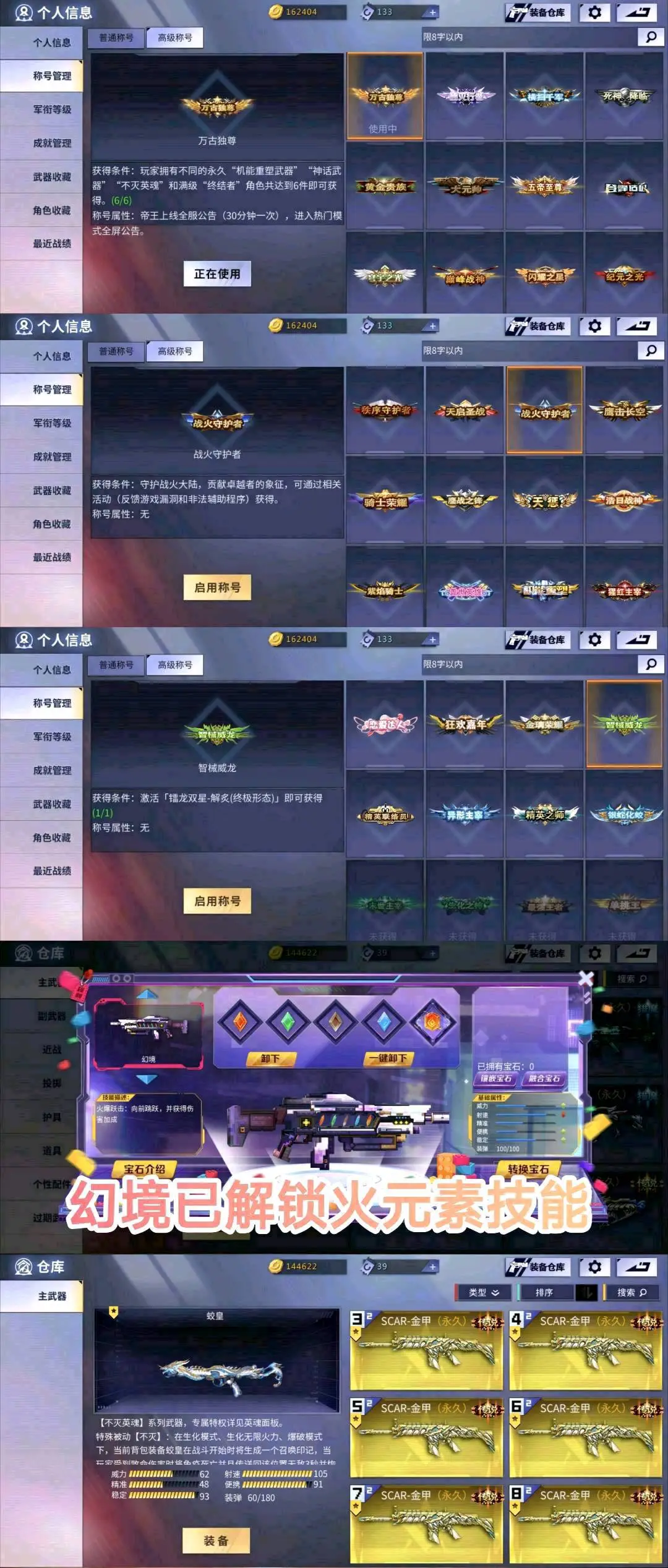 血清道具卡C4工具钳弹夹等道具全面开满,放心租聘❤️(已有63把重复五星级武器,皮肤会一起算,光看图鉴武器不够数恶意武器维权的将会严惩)(展示图里面称号有些是暂时的,有期限不代表永久存在,例:死神降临,生化之神等,用这个作为撤单理由,属于恶意撤单!)(包夜,包天更加便宜优惠,喜欢记得收藏喔♥)