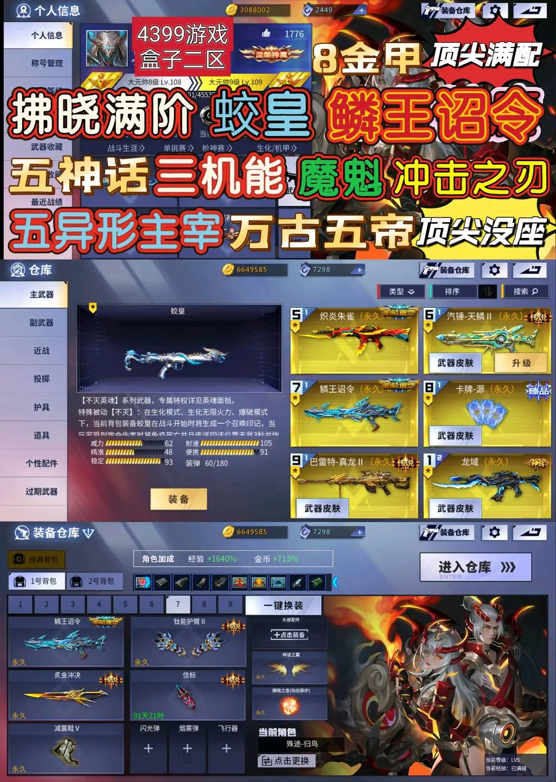 【安卓】 【轩宝租号】鳞王蛟皇✨凛冬传奇✨幻魔皮卡牌源拂晓满✨魔魁⚡五神三机冲击✨万古五帝⚡五异形🔥63五星