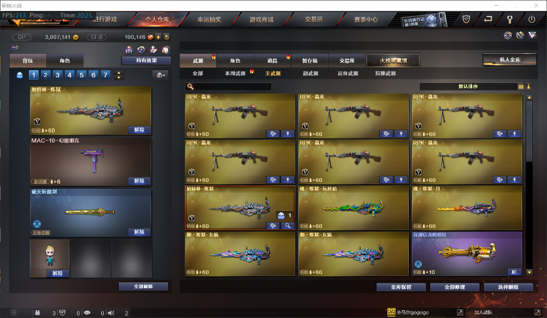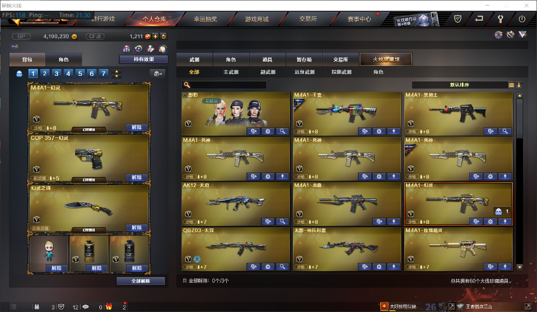 武器:六盘六烈 加特林-炼狱 毒峰 M4A1-幻灵