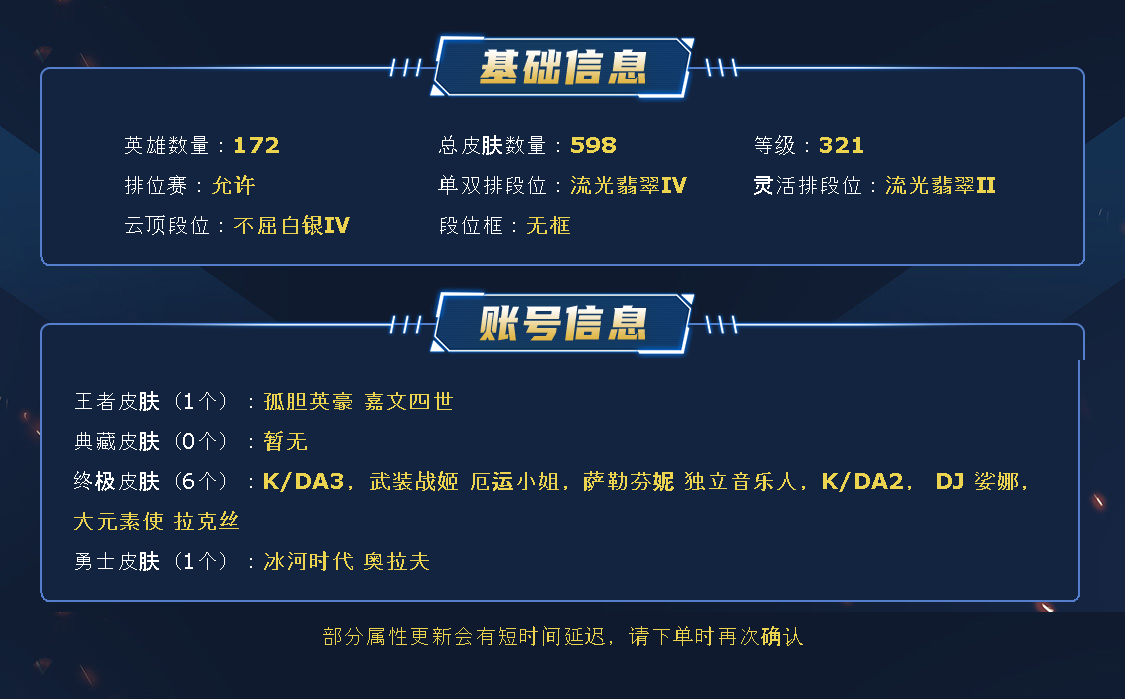 【全英雄可排位310原皮肤】至臻女枪、至臻拉克丝、至臻婕拉、至臻EZ、灰烬杀手塞拉斯、海克斯卡萨丁、海克斯炸弹人、海克斯皇子、海克斯大嘴、神凰行者萨勒芬妮、牛年诺手、鼠年盖伦、马年皎月、司马懿仲达、勇敢的心诺手、狗头狗头、狗年拉克丝、狗年狼人、蛇年蛇女、电玩阿狸、电玩女枪、龙年猴子、羊年金克丝、猴年女警、K/DA ALL OUT萨勒芬妮、幻灵战斗队长女枪、光明哨兵男枪、灵能特工琴女、至尊魔女莫甘娜、万圣节娜美、水晶玫瑰婕拉、征服者卡尔玛、征服者韦鲁斯、神龙尊者卡尔玛、神龙尊者卡莎、神龙尊者寒冰、青花瓷拉克丝、欲望之主泽拉斯、古神石头人、太空律动拉克丝、双鱼星神娜美、抵抗军雷神杰斯、屠龙勇士巨魔、武装战姬、大元素使、DJ、冰雪节辛德拉、创星之灵璐璐、万圣节提莫、冰雪节奶妈、钢铁拉克丝、冠军之箭、鸡里奥、克格汪、送披萨的小姐姐、万圣节莫甘娜、情人节金克丝、万圣节维克托、卧虎藏龙、万圣节人马、泳池发条、泳池岩雀、泳池辛德拉、泳池大头、黎明使者奶妈、律政大亨蒙多、神王盖伦、西部天使寒冰、星守金克丝、星守洛、星守霞、耀星女神拉克丝、源计划寒冰、暗星泽拉斯、黯晶之眼维克兹、奥德赛石头人、奥德赛琴女、貂蝉、吕布、魔女婕拉、魔女丽桑卓、千纸凤凰、糖果大战炸弹人、图奇影足、未来战士慎、孙尚香、小蜜蜂大嘴、星守奶妈、宇航员小法、玉剑娜美、战斗教授男枪、战斗学院拉克丝