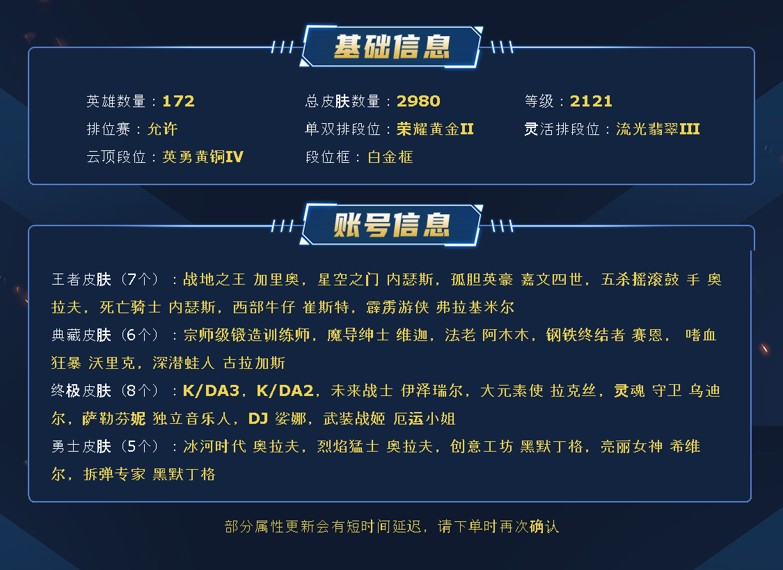 艾欧尼亚果壳✨2992皮丨商城清空丨可排位丨全套冠军皮丨全终极丨106至臻丨甜妹美女号丨玉剑男女刀丨
