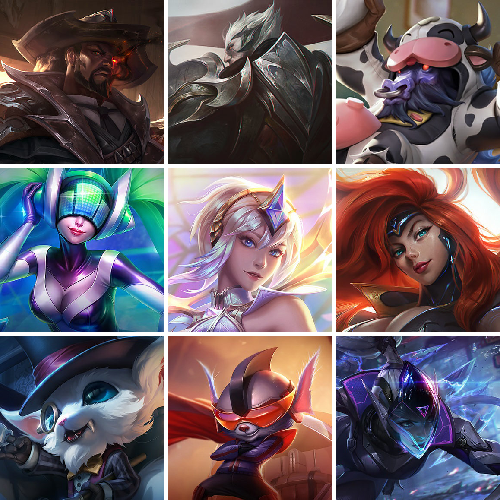 700皮肤〓至臻阿狸〓恐惧新星〓哥特萝莉〓龙猴龙琴〓张辽神王〓水晶圣骑艾希