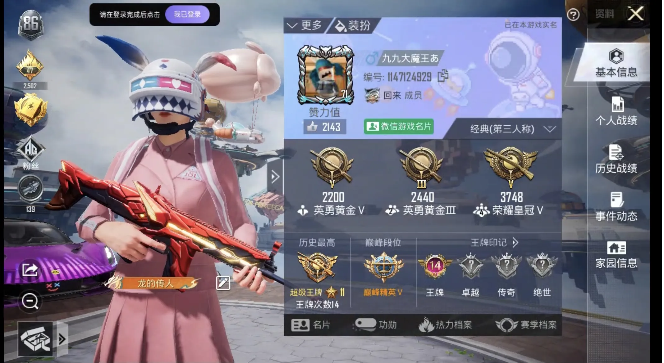 首页 > 和平精英 > /安卓 /微信区 /默认区服 > 商品编号:226209