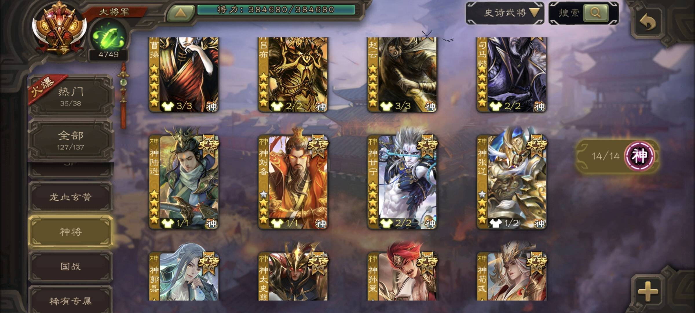 神——神吕布,神赵云,神司马懿,神陆逊,神刘备,神甘宁,神张辽,神太史慈,神荀彧,神曹操,神郭嘉,神孙策,神华佗