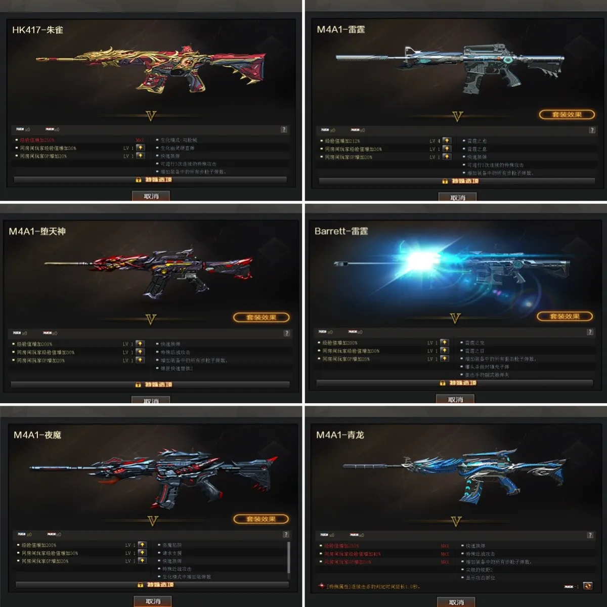 【重要光效】AK47-黑武士金色光效/Barrett-极光金色光效/Barrett-毁灭金色光效/M4A1-黑龙金色光效/沙鹰-修罗金色光效/炼狱-悦蓝金色光效/王者之幻金色光效/王者之心金色光效/AK47-黑武士蓝色光效/AWM-天龙蓝色光效/M4A1-死神蓝色光效/沙鹰-修罗蓝色光效/AWM-天龙红绿色光效/M4A1-武圣红绿光效/M4A1-死神红绿色光效/M4A1-玫瑰精灵红绿光效/M4A1-雷神红绿光效/RPK-盘龙红绿色光效/M4A1-武圣紫色光效/M4A1-黑骑士紫色光效