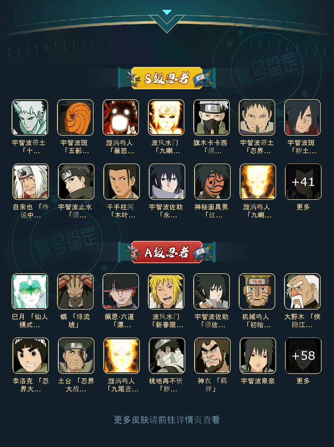 54S 71A 347忍者 蝎 「绯流琥」/佩恩·六道 「漂泊浪客」/波风水门「新春限定」/巳月 「仙人模式」/神秘面具男 「红夜之刃」/宇智波斑 「秽土转生·解」/自来也 「传说中的三忍」/宇智波带土 「十尾人柱力」/波风水门「秽土转生」/千手柱间 「木叶创立」/宇智波止水 「须佐能乎」/漩涡鸣人 「九喇嘛连结」/漩涡鸣人 「暴怒·第六尾」/宇智波斑 「五影会谈」/宇智波斑「白面具」/宇智波带土「忍界大战」/三代目风影 「秽土转生」/宇智波佐助 「永恒万花筒」/佩恩·天道「超」/旗木卡卡西 「须佐能乎」/波风水门 「九喇嘛连结」