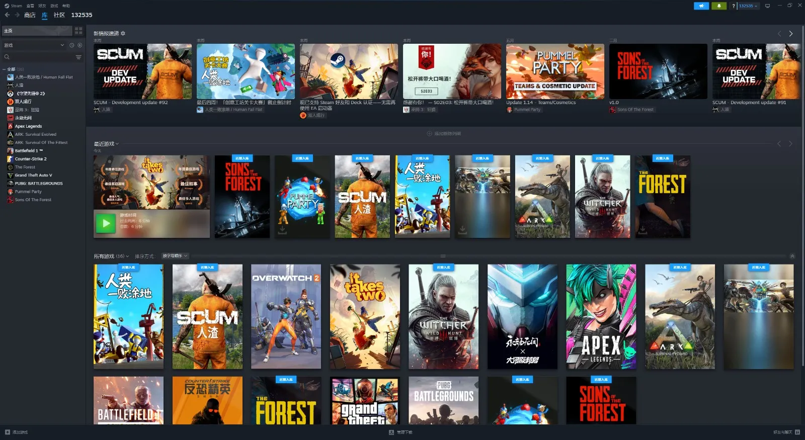 超多游戏!森林之子⭐双人成行⭐巫师3⭐人渣⭐森林⭐揍击派对⭐方舟生存进化⭐人类一败涂地⭐永⭐劫无 间