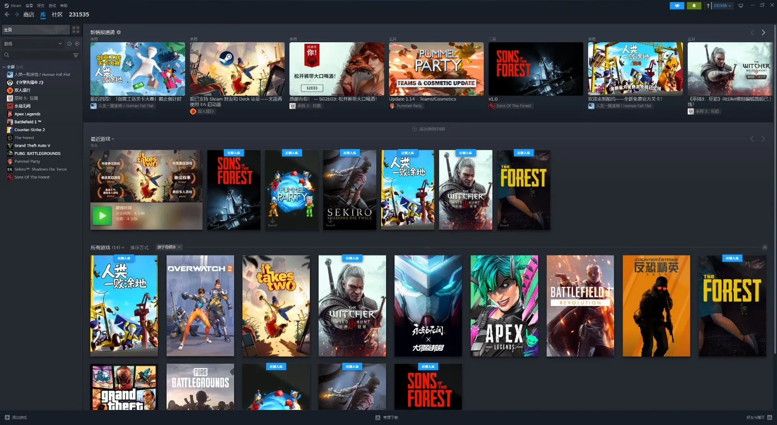 超多游戏!森林之子⭐双人成行⭐只狼:影逝二度⭐巫师3⭐森林⭐揍击派对⭐人类一败涂地⭐绝地求生⭐csgo