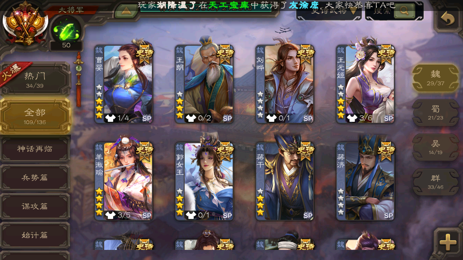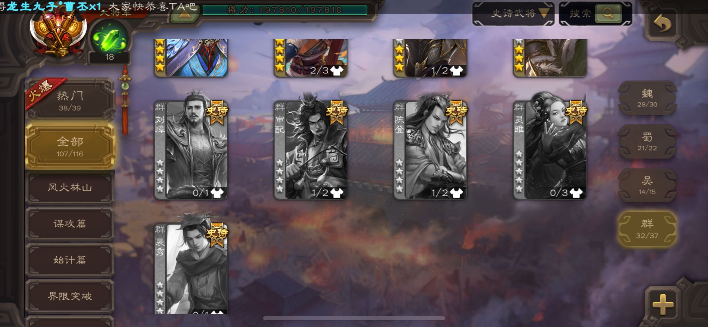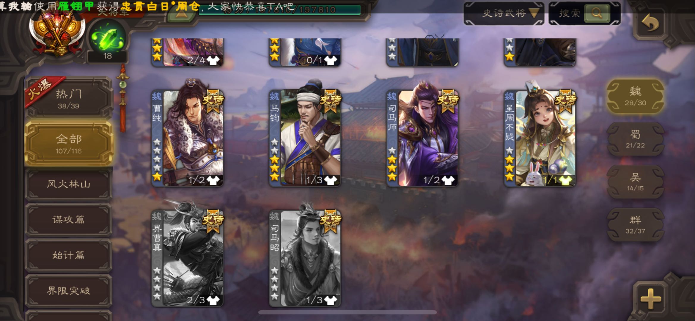 差几个无用史诗107史诗曹髦谋曹丕回廊神郭嘉回廊钟会回廊双动杜预动刘焉神鲁肃回廊谋关羽十常侍回廊文鸯神司马懿