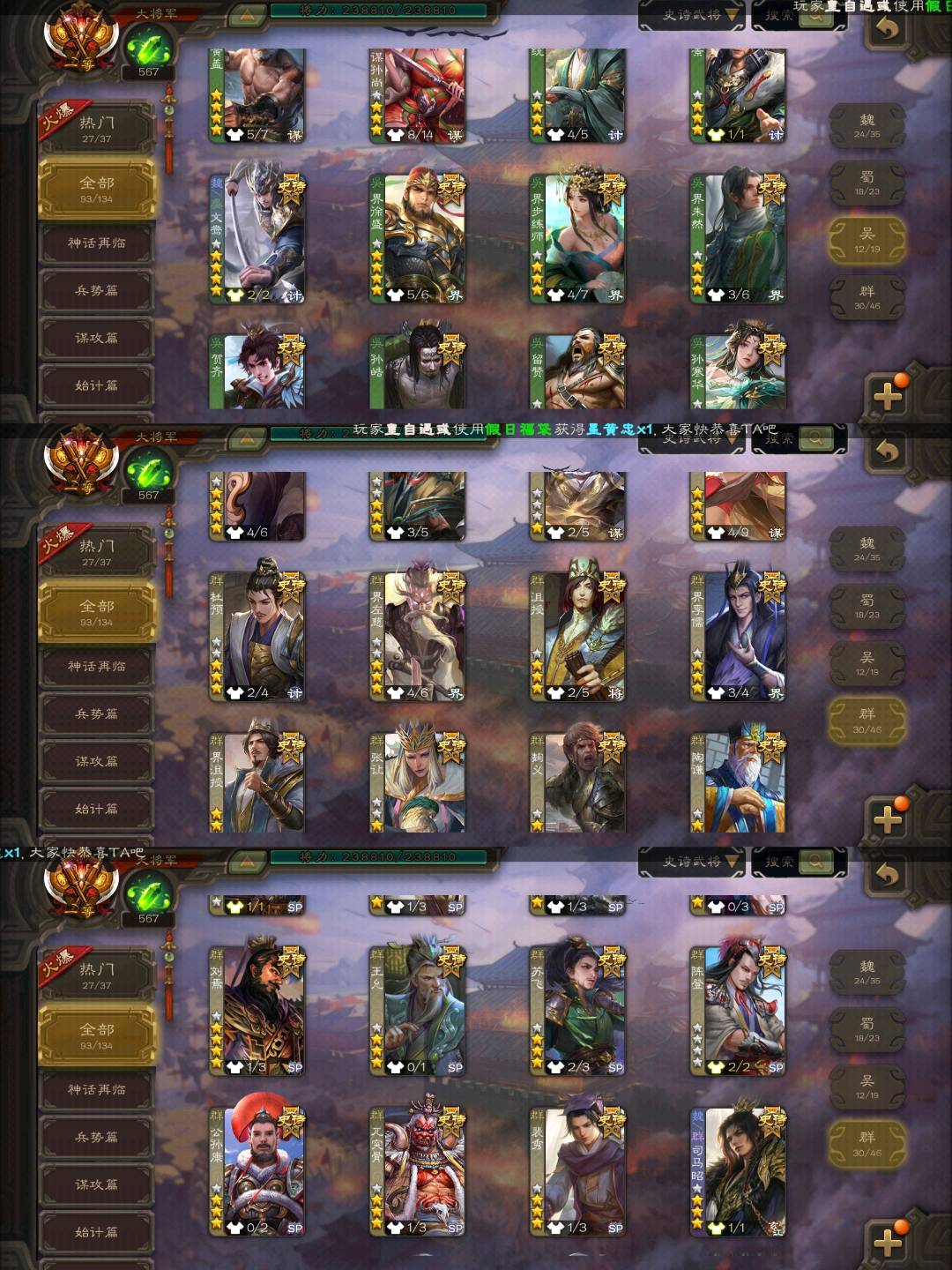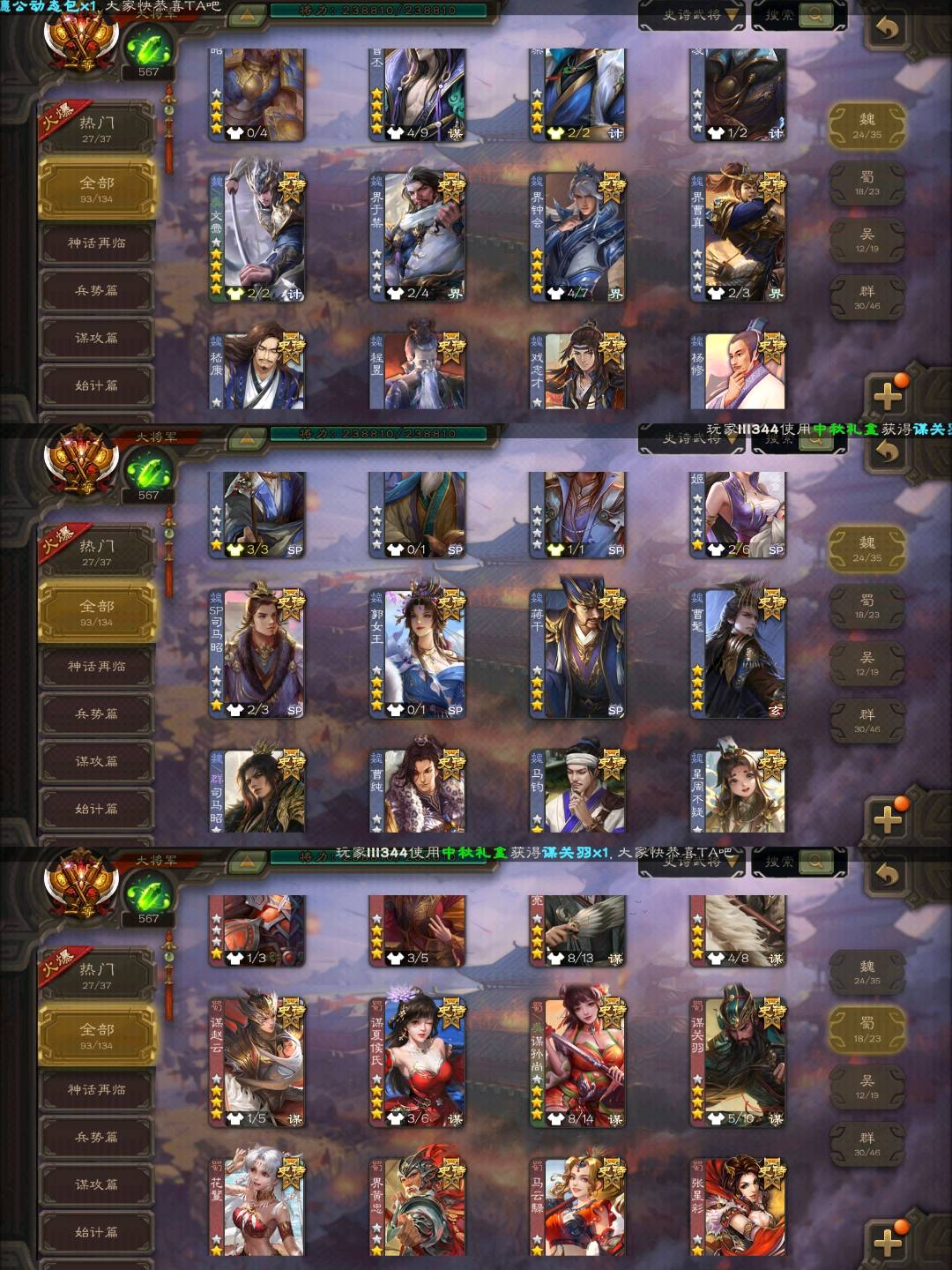 蜀——王平,诸葛瞻,谋马超,谋赵云,谋夏侯氏,花鬘,界黄忠,马云騄,张星彩,董允,赵襄,关索,沙摩柯,周群,谯周,谋孙尚香