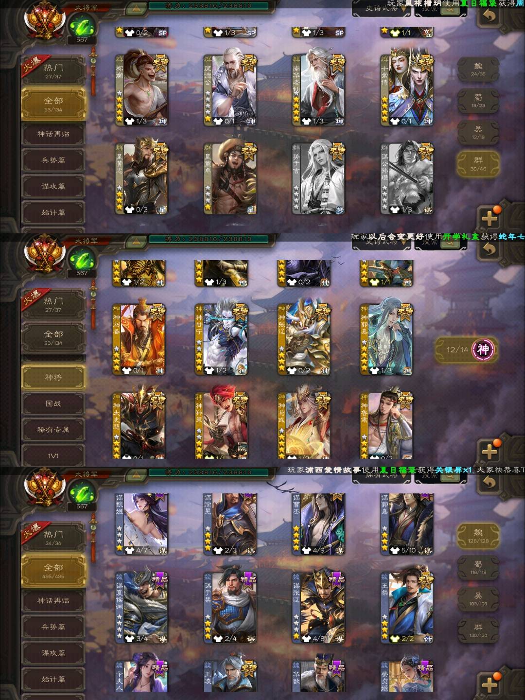 神——神吕布,神赵云,神陆逊,神刘备,神甘宁,神张辽,神太史慈,神荀彧,神郭嘉,神孙策,神鲁肃