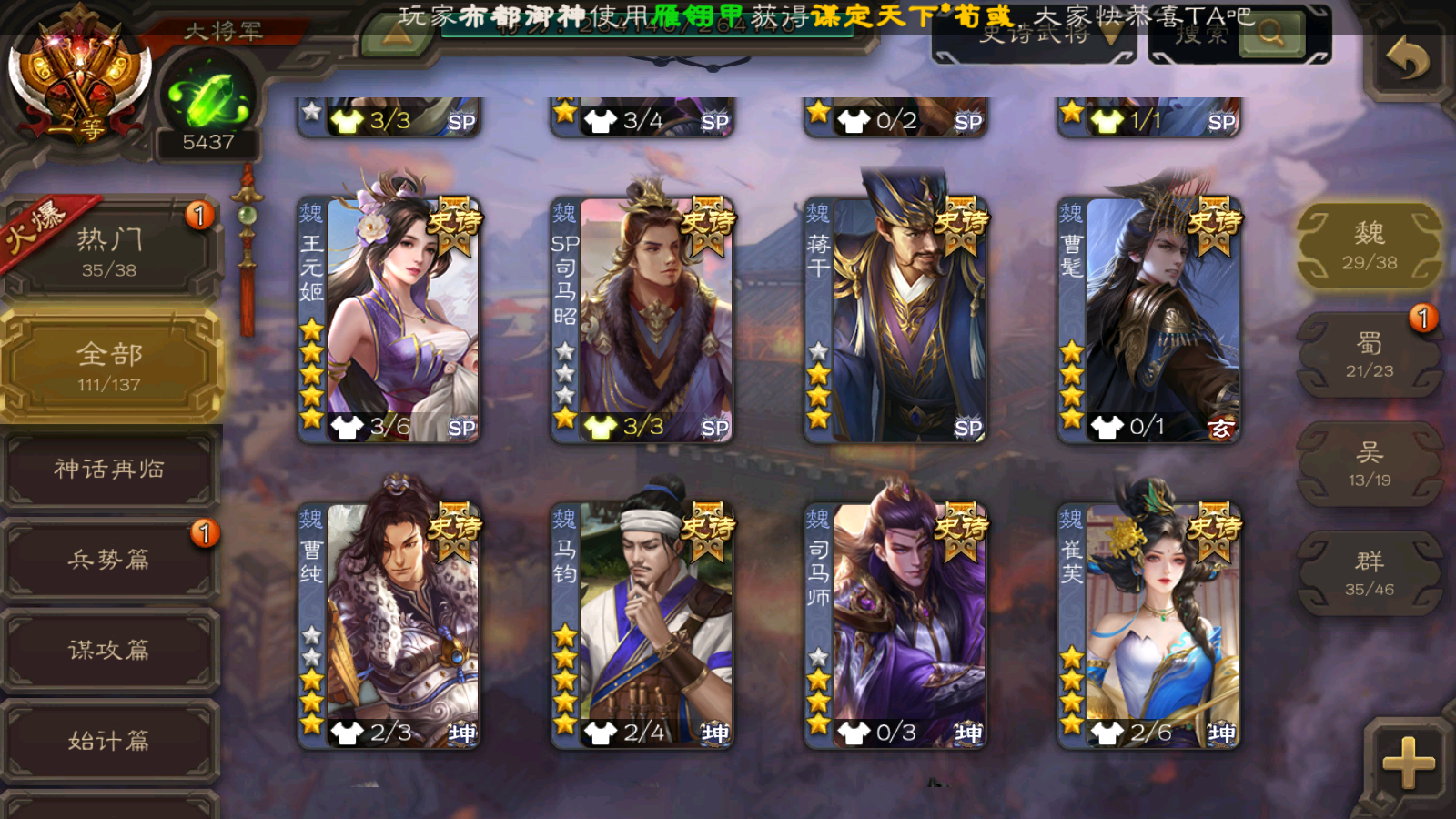 【全平台】 【锦鲤有卡】三卡111史诗崔芙势辛宪英曹髦回廊文鸯回廊神荀彧回廊孙寒华谋曹丕动刘焉神鲁肃