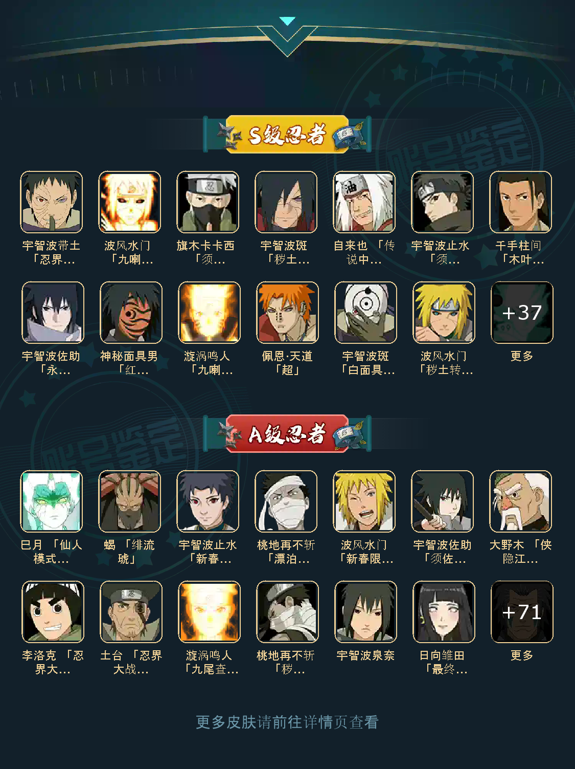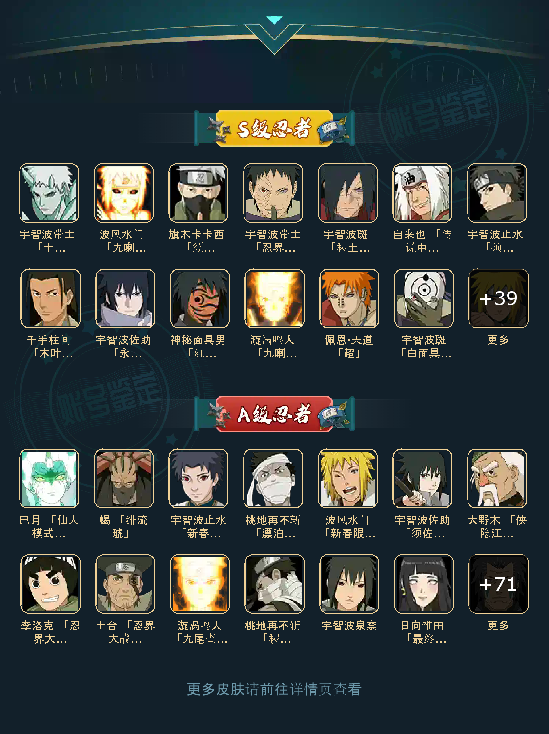 341忍者❤2900万战❤秽土解斑❤桀骜之刃❤真容卡卡西❤面麻❤阿飞❤漂泊小南❤恶灵飞段❤暴怒带土