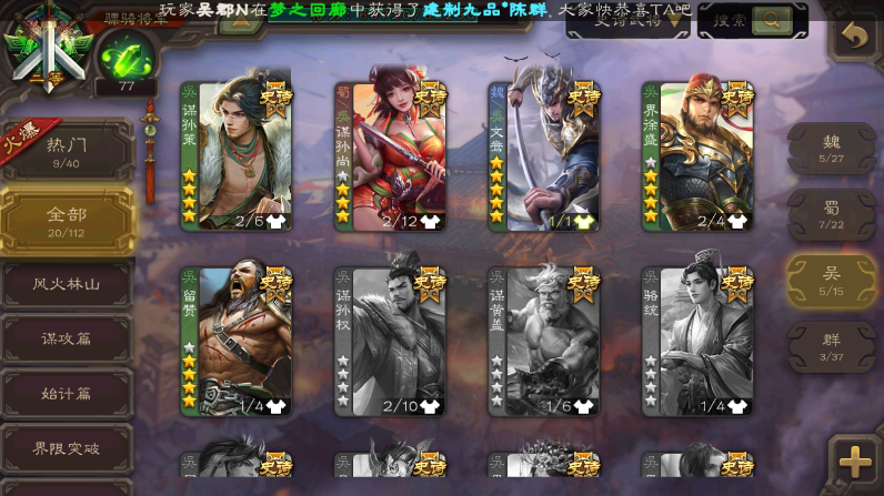 23/史诗武将数量
