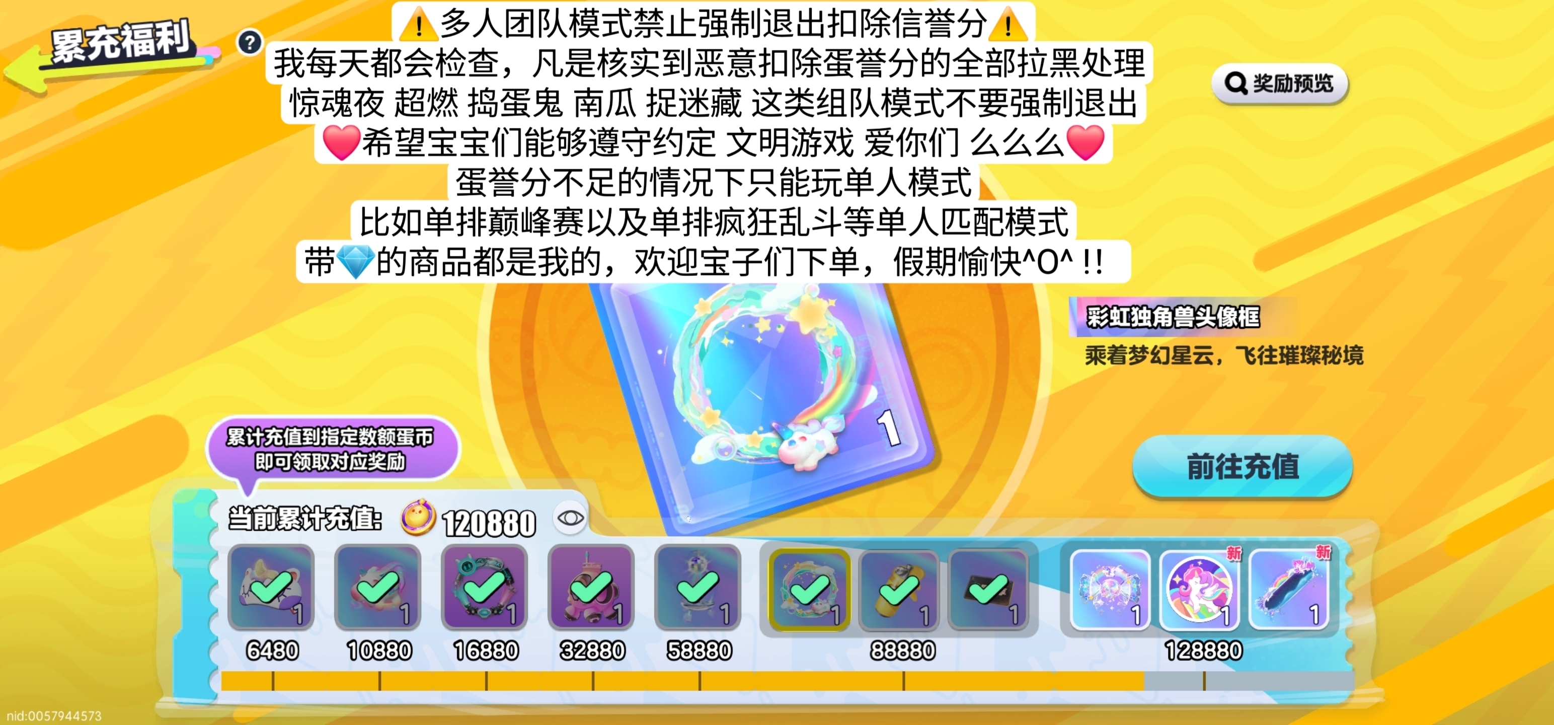 蛋仔派对,黎月园长,蔷薇红皇后,断罪骑士-极,圣翼天使-澄,黎月园长,暗匿小丑,蔷薇红皇后,音爆曜星,星际莱克,醒狮蛋宝,艾瑞和巴蒂,欢宴园长,蔷薇白皇后,玉龙云岫,断罪骑士-岚,断罪骑士-烈,猎罪修罗-樱,猎罪修罗-溟,圣翼天使-恋,圣翼天使-堕,电竞模式,透明蓝帽,甜酷阿莉,织梦精灵,冰霜骑士,水母莱莱,小蓝帽,清姬樱子,深海灏克,胆小鬼,木偶波露,蟹船长,黑森麦克,月影摇摇兔、仙舞飘飘鹿、透明蓝帽、机甲、浪花戴露姗、小羊、兔兔车、白皇后、懒羊羊、鲨莉娃、砂糖熊王子,千山绘灵青岚、人鱼歌姬赛然、飞天舞姬连若、断罪骑士极、浪花黛露珊、鎏金奥莉安娜、暗夜皇女德希拉、暗夜皇子德古拉、断罪骑士烈、霓裳天姬莲若、焰心龙女芙瑞、曙光龙女芙瑞、烛光精灵夜清、雾隐精灵夜清、北辰斗星破军、城隍女君天心、佣兵,杰克,园丁,橙留香,梅海海,铃兰三月兔,焰心龙女芙瑞,曙光龙女芙瑞,翠羽之屏,极真阿莉,无敌凤凰,超级凤凰,许愿币,单字ID,闪电护目镜、单字,彩虹币,赵云,至臻滚动特效,雪影极光羽,鱼龙舞,桃花春晓,王者荣耀,和平精英,第五人格,元梦之星,火影忍者,手游Cf,穿越火线,无畏契约,三角洲行动,使命召唤手游,超自然行动组,逃出惊魂夜,特价,面雀