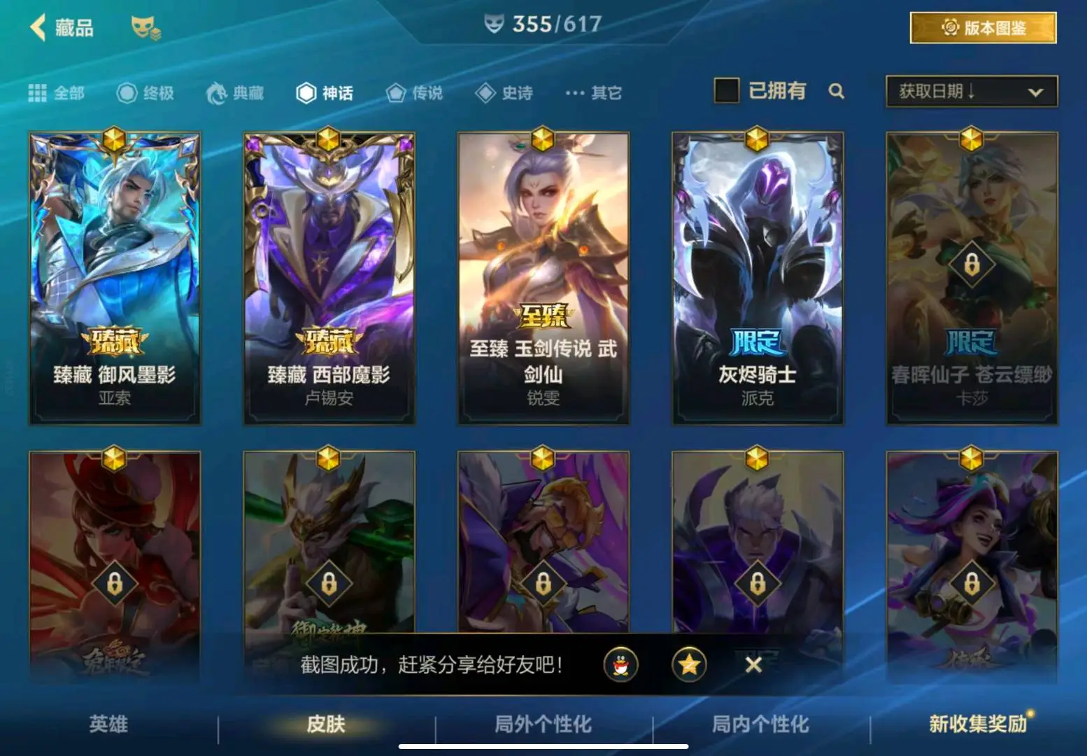 【苹果】 推荐包天🔥366皮🔥典藏劫 莎弥拉🔥4神话 臻藏亚索 卢锡安🔥神话御剑锐雯 灭尽派克
