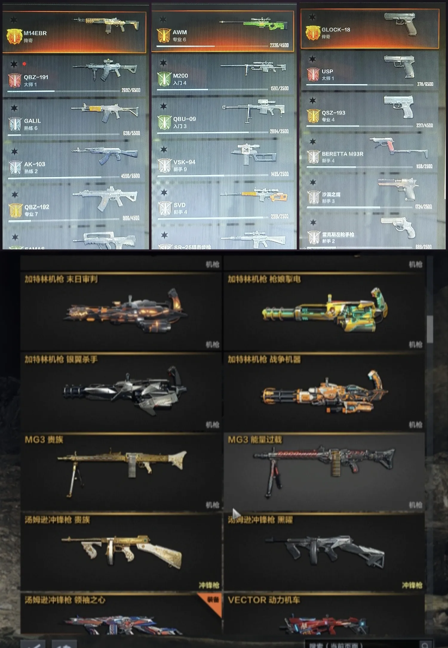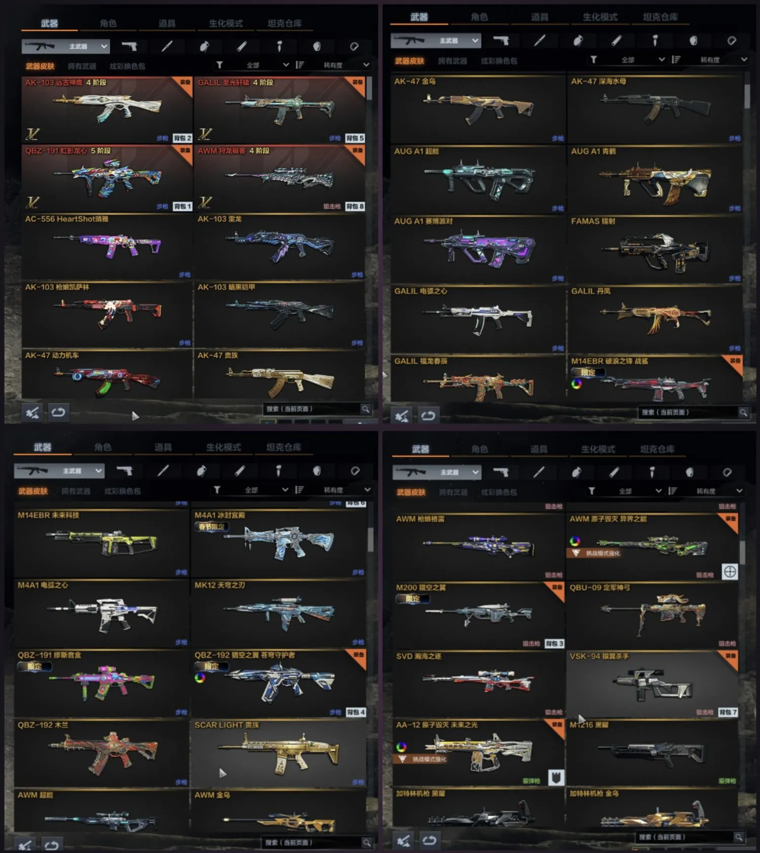 四神话满级全套✨若清雅冬日左悠悠✨传说魔石4挑战武器✨191加特林MG3✨160金
