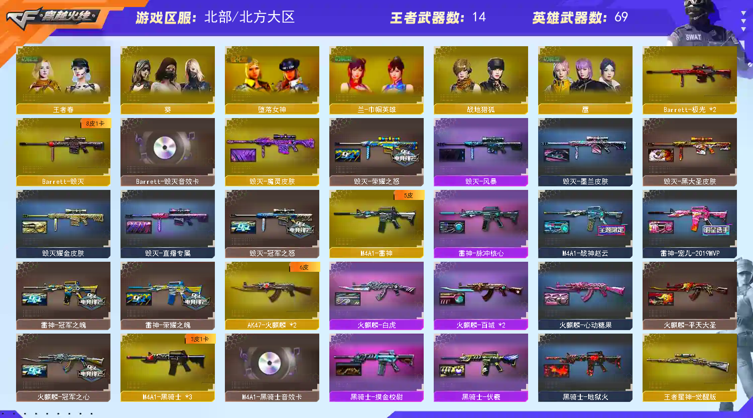 🔥火麒麟8皮+AG+冠军心+白虎+雷神+🔥