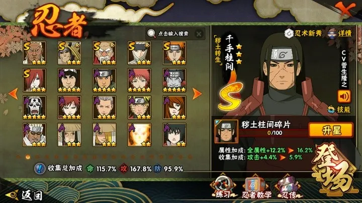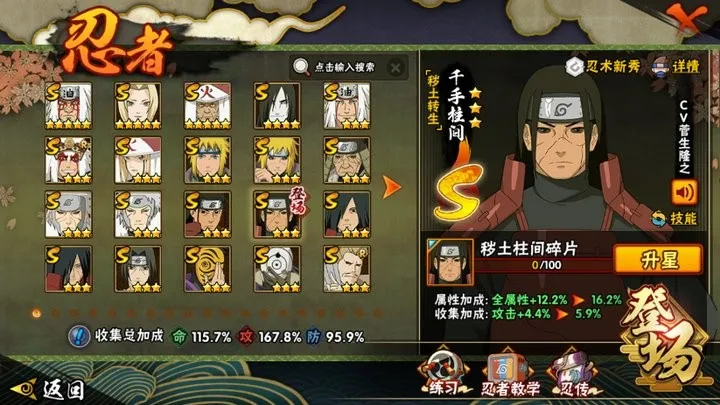 战力:1588W+;VIP11级;S忍26个;A忍34个,通灵兽18个,S忍:仙人自来也普通纲手猿飞日斩大蛇丸普通自来也百豪纲手波风水门秽土水门秽土猿飞豪杰自来也秽土扉间千手扉间千手柱间秽土柱间秽土斑宇智波斑须佐鼬神秘面具男白面具鬼灯幻月四