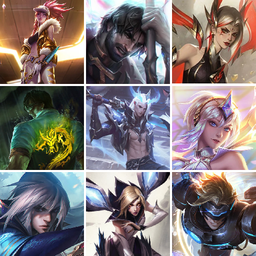 【传说皮肤】黯黑魔龙希瓦娜 黯晶凤凰艾尼维亚 暗星锤石 暗星女王拉克丝 暗星塞拉斯 暗星尊烬 奥德赛凯隐 霸天零式赛恩 霸天异形卡兹克 冰川巨兽墨菲特 冰霜亚龙希瓦娜 冰霜之刃艾瑞莉娅 苍穹之光韦鲁斯 大天使长米迦勒凯尔 电玩女神娑娜 第三类接触黑默丁格 地狱行者孙悟空 地狱之门卫士加里奥 恶魔男爵瑞兹 恶魔之刃泰达米尔 符文战熊沃利贝尔 钢铁军团盖伦 钢铁之翼凯尔 光明哨兵格雷福斯 光明哨兵薇恩 灌篮高手德莱厄斯 鬼魂新娘莫甘娜 海魔至尊亚托克斯 黑夜使者索拉卡 黑夜使者亚索 合金巨兽努努和威朗普 红色男爵库奇 幻灵战斗队长厄运小姐 花仙女王卡尔玛 金牌主播德莱文 绝息圣堂锐雯 枯萎之壤泽拉斯 狼神英灵安蓓萨 炼狱魔犬内瑟斯 烈焰雄心崔丝塔娜 黎明使者锐雯 黎明使者索拉卡 黎明使者永恩 灵魂莲华阿狸 灵魂莲华锤石 灵魂莲华瑟提 灵能特工娑娜 陆地王者4WD布里茨 律政大亨蒙多 魔幻卡牌崔斯特 魔女娜美 魔女伊芙琳 墨之影武者易 女帝卡特琳娜 女皇艾希 女警狙击凯特琳 女校长菲奥娜 女主播迦娜 欧米伽小队幽灵特工 偶像歌手阿狸 苹果机器人布里茨 蔷薇绅士杰斯 青花瓷伊泽瑞尔 日蚀骑士蕾欧娜 日蚀骑士希维尔 丧尸布兰德 上古战魂魔腾 神龙尊者圣龙李青 神龙尊者夜月幻龙亚索 神龙尊者昼日真龙亚索 神拳李青 绅士科加斯 神王德莱厄斯 神王盖伦 双重冰晶艾尼维亚 死亡骑士盖伦 太空律动律动队长提莫 太空律动猫猫布里和里茨 天煞劫 铁哥们儿奥拉夫 提莫约德尔人的一大步 屠龙勇士潘森 未来战士凯特琳 西部魔影大小姐蕾欧娜 西部魔影卢锡安 西部魔影永恩 西部天使艾希 西部天使赛娜 邪鸦魅影乐芙兰 腥红之月鬼武姬阿卡丽 星之守护者阿卡丽 星之守护者阿狸 星之守护者净化之翎洛 星之守护者净化之羽霞 星之守护者金克丝 星之守护者卡莎 星之守护者拉克丝 星之守护者洛 星之守护者霞 心之钢凯隐 血石领主弗拉基米尔 驯龙炮手崔丝塔娜 驯龙学者黑默丁格 焰尾妖狐阿狸 耀星女神拉克丝 影执事劫 银河魔装机神兰博 泳池派对吉格斯 源计划超体莫德凯撒 源计划毁灭派克 源计划净化薇恩 源计划联合艾希 源计划林易 源计划泯灭雷克顿 约德尔国队长提莫 月蚀骑士蕾欧娜 宇航员诺提勒斯 战场女武神凯尔 战地机甲厄加特 战地巨兽科加斯 战斗学院凯特琳 战斗学院伊泽瑞尔 真实伤害艾克 至高天派克 至尊魔女莫甘娜 最终BOSS维迦