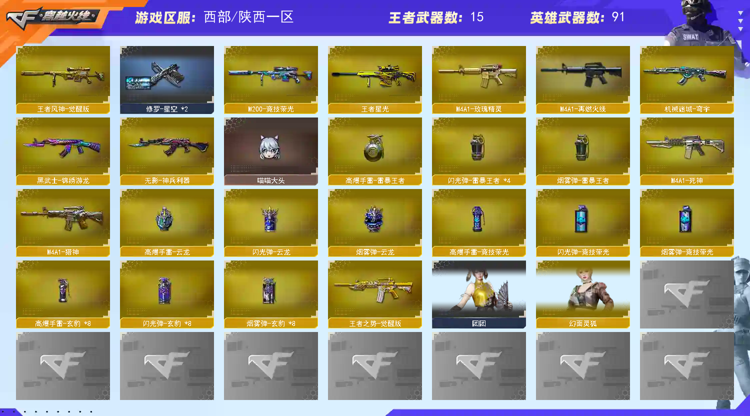 【不允许排位】生化天花板影煞四防星骇破晓蝴蝶刀八面天戎天袭冥王(金色蔷薇裁决带皮带卡)六烈清道夫小人枪玄豹雷暴投掷