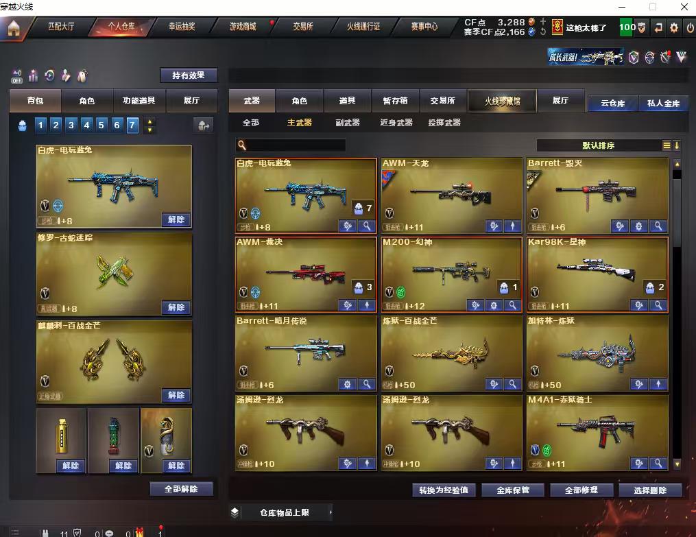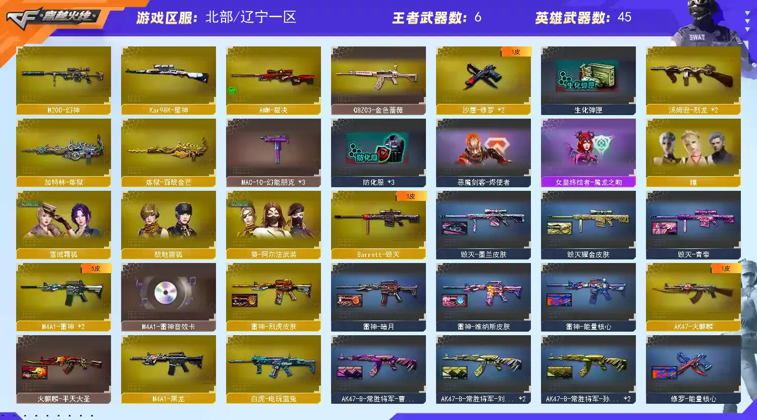 【允许排位】幻神/星神/qbz金色蔷薇/电玩白虎/毁灭耀金➕音效卡/10刀/4副/2炼狱/2烈龙/雷神/裁决/