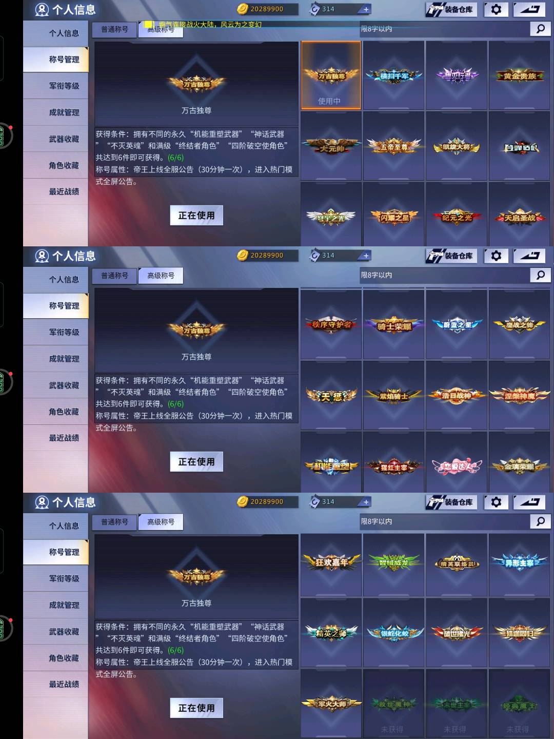 8臻品皮肤 满异彩 多套装 满星座