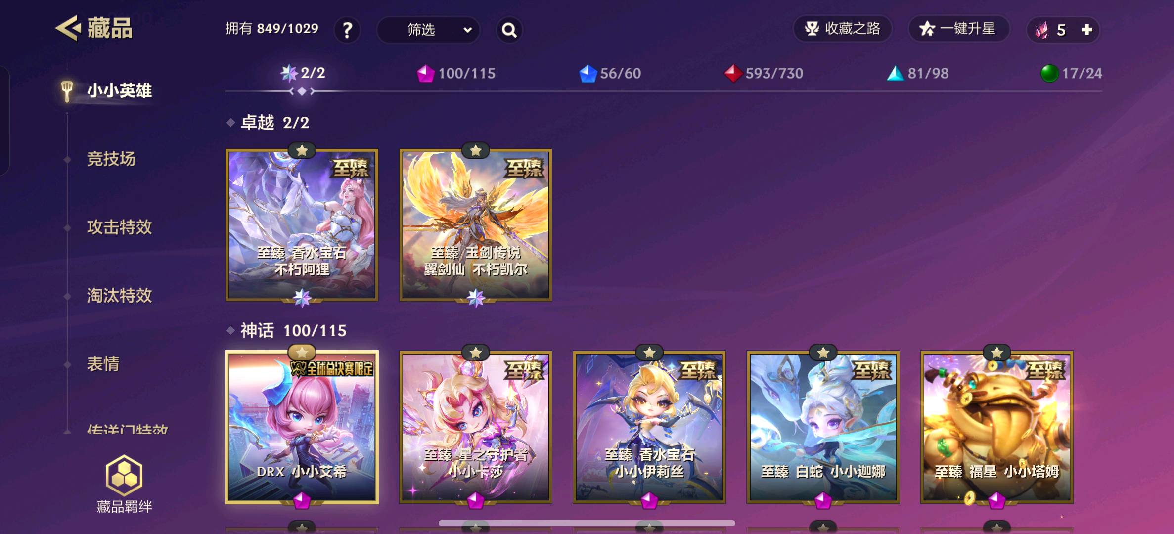 【安卓】 神豪VIC100神话18至臻🦄至臻凯尔✅不朽阿狸✅至臻卡莎✅胡子喵黑洞✅满幻境✅至臻蜘蛛