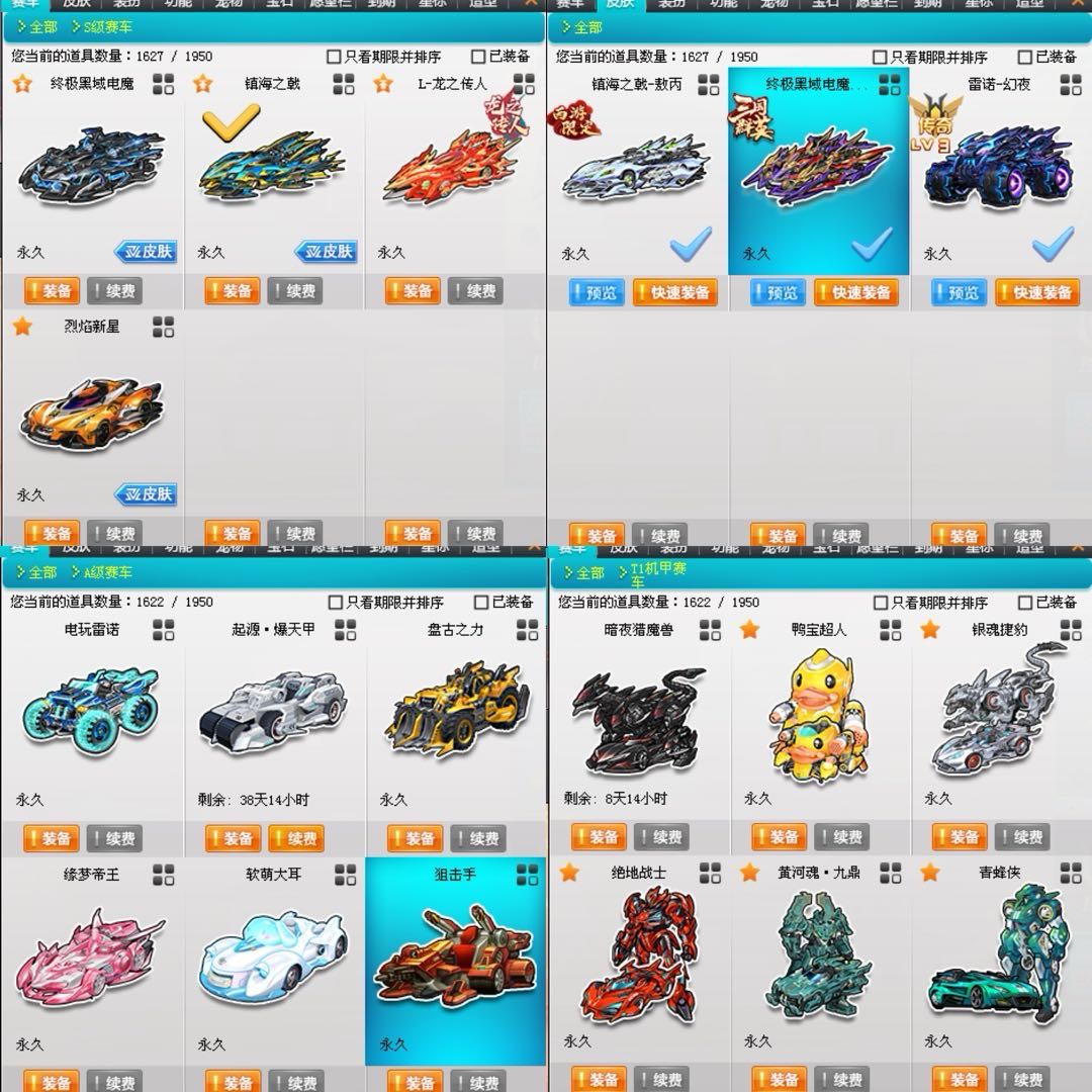 4辆S全29终极黑域电魔曹操双四+29镇海之戟敖丙单四+29电玩雷诺+25龙之传人烈焰新星+人鱼公主