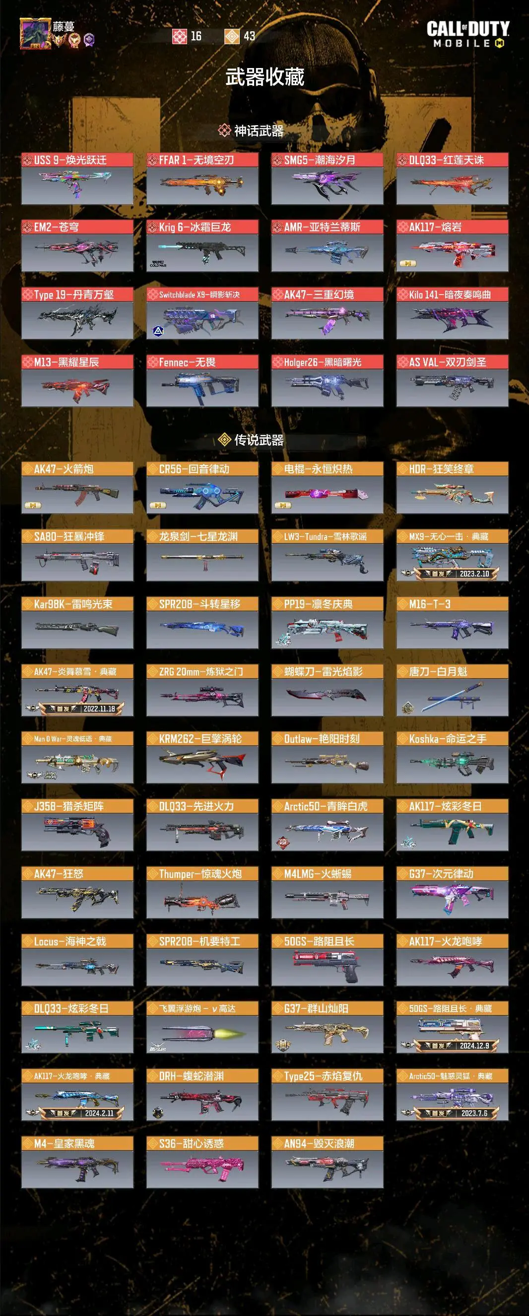 16/满级神皮(枪+角色)
