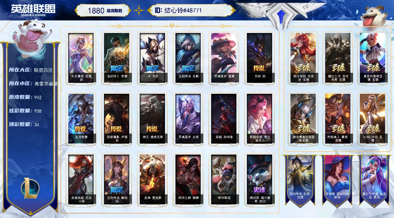 【联盟四区】1866皮丨78神话丨冰雪皎月丨黎明永恩丨幻灵女枪丨灵魂莲华腕豪