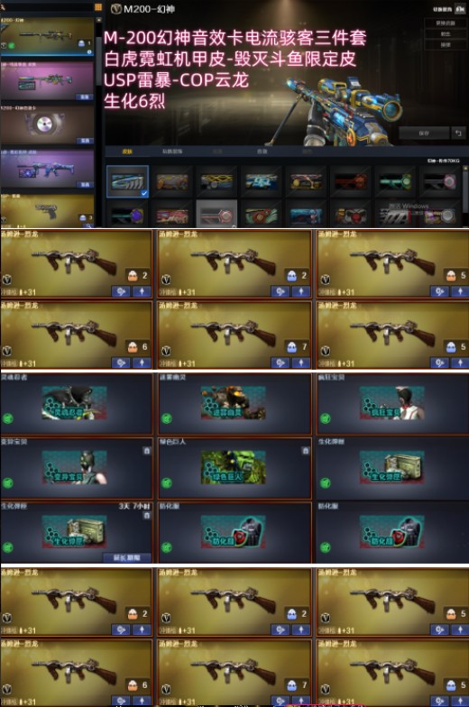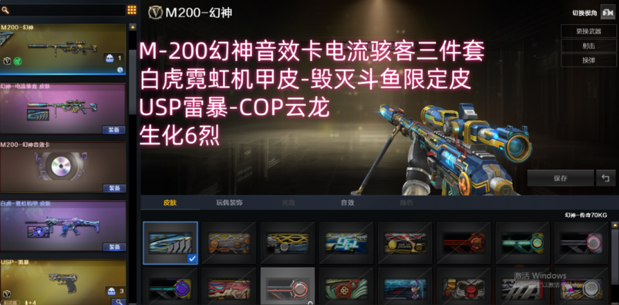 北部M-200幻神音效卡电流骇客三件套+USP雷暴云龙白虎霓虹机甲皮毁灭斗鱼限量皮+生化6烈死亡之眼