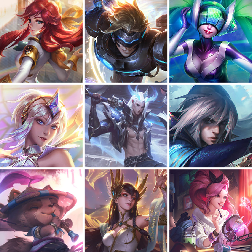 【重要炫彩】无畏骑士瑟庄妮赤子初心 神龙尊者圣龙李青龙腾云起 战斗学院凯特琳独角兽 灵魂莲华阿狸春晓 雾雨之刃锐雯 可爱可爱粉红红布里茨 净雪之月莫甘娜冬虹 源计划联合艾希红莲之弓 幻灵战斗队长厄运小姐勇气赞歌 西部魔影卢锡安圣辉牛仔 西部天使赛娜贝利尔之怠 西部天使赛娜神选天使长 西部魔影卢锡安贝利尔之怠 星之守护者金克丝黑洞 黎明使者锐雯黑夜使者 战斗学院伊泽瑞尔白金学长 最终BOSS维迦里大魔王 可爱可爱粉红红悠米 奥德赛娑娜恒星游历者 腥红之月卡特琳娜落樱 魔女乐芙兰贪婪 冲击之刃奇亚娜粉猫 日蚀骑士希维尔浪漫 可爱可爱粉红红努努和威朗普 暗星萨科美神星之灭 冲击之刃慎粉猫 可爱可爱粉红红提莫 糖果大战布隆樱桃夹心饼 刃执事德莱文幻魅 灌篮高手艾翁浪漫之星3号 奥术师克格莫塑心学徒 沙之守护雷恩加尔爱情守护神 天龙之子卡莎飞龙乘云 魔女阿卡丽虚荣 心之钢伊泽瑞尔天纵才华 墨之影武者亚索金墨耀影