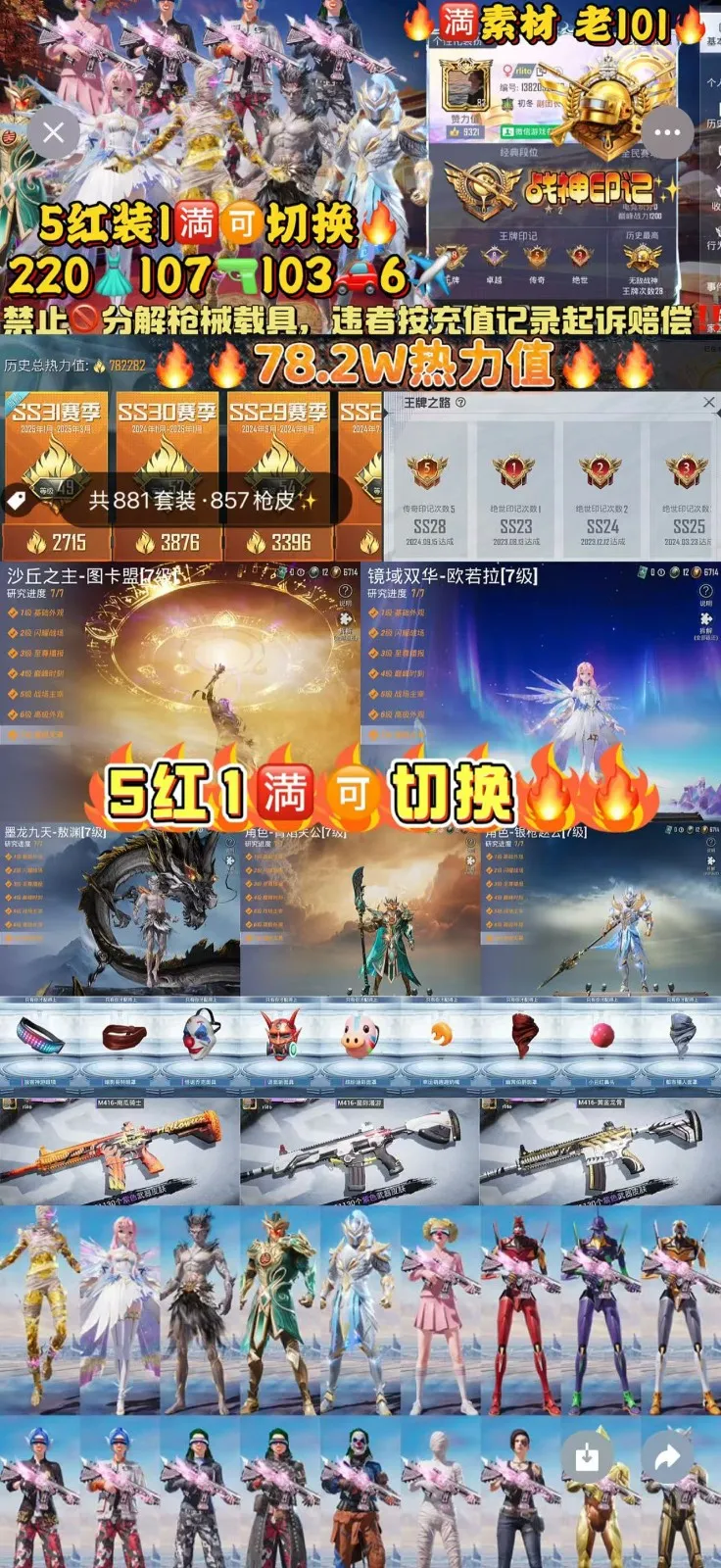 【安卓】 9红装🈵最终圣卫者帕修斯哈莉80w热力全🈵素材老101战神框4把🈵9级枪❤️228粉104车
