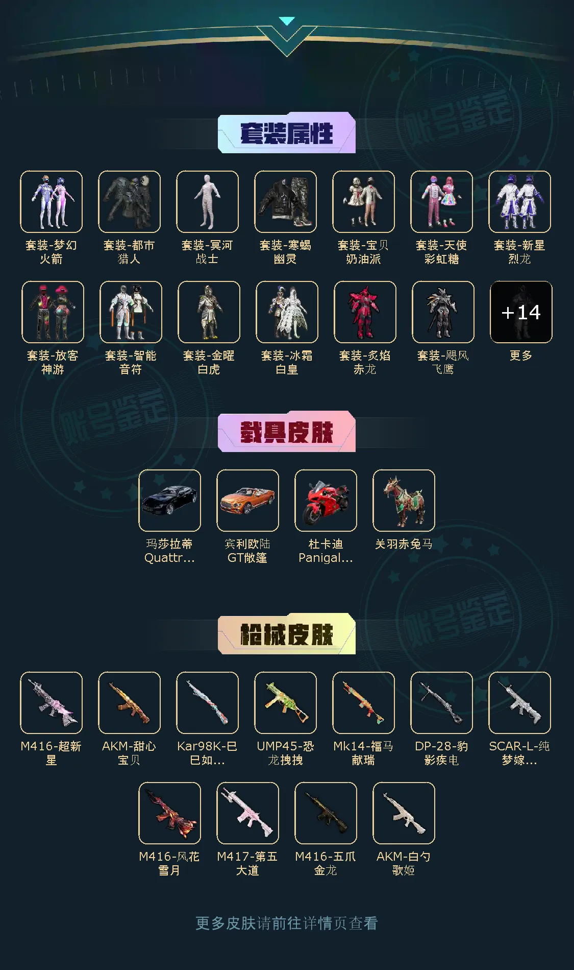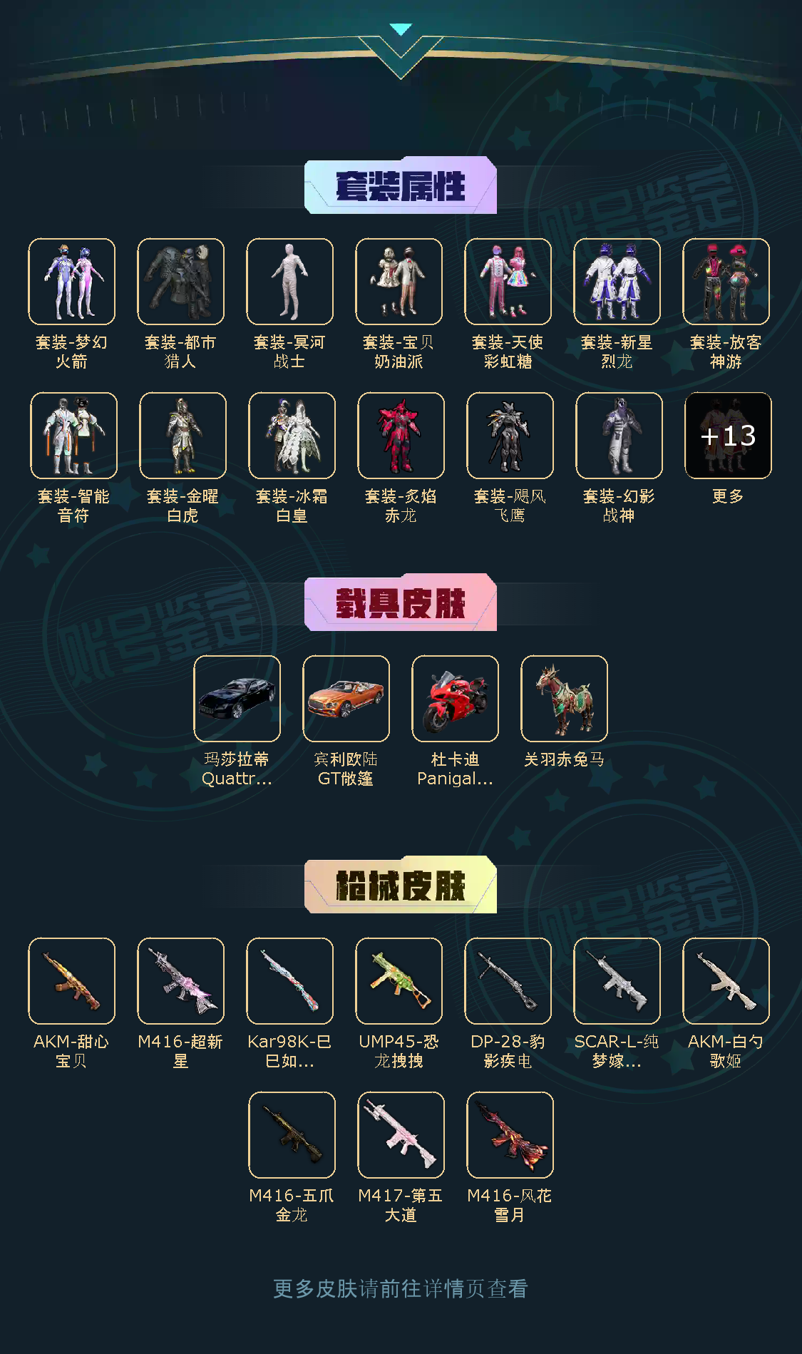 【粉色枪皮】M416-五爪金龙/AKM-甜心宝贝/AKM-白勺歌姬/SCAR-L-纯梦嫁纱/M416-风花雪月/M416-超新星/Kar98K-巳巳如意/M417-第五大道/UMP45-恐龙拽拽