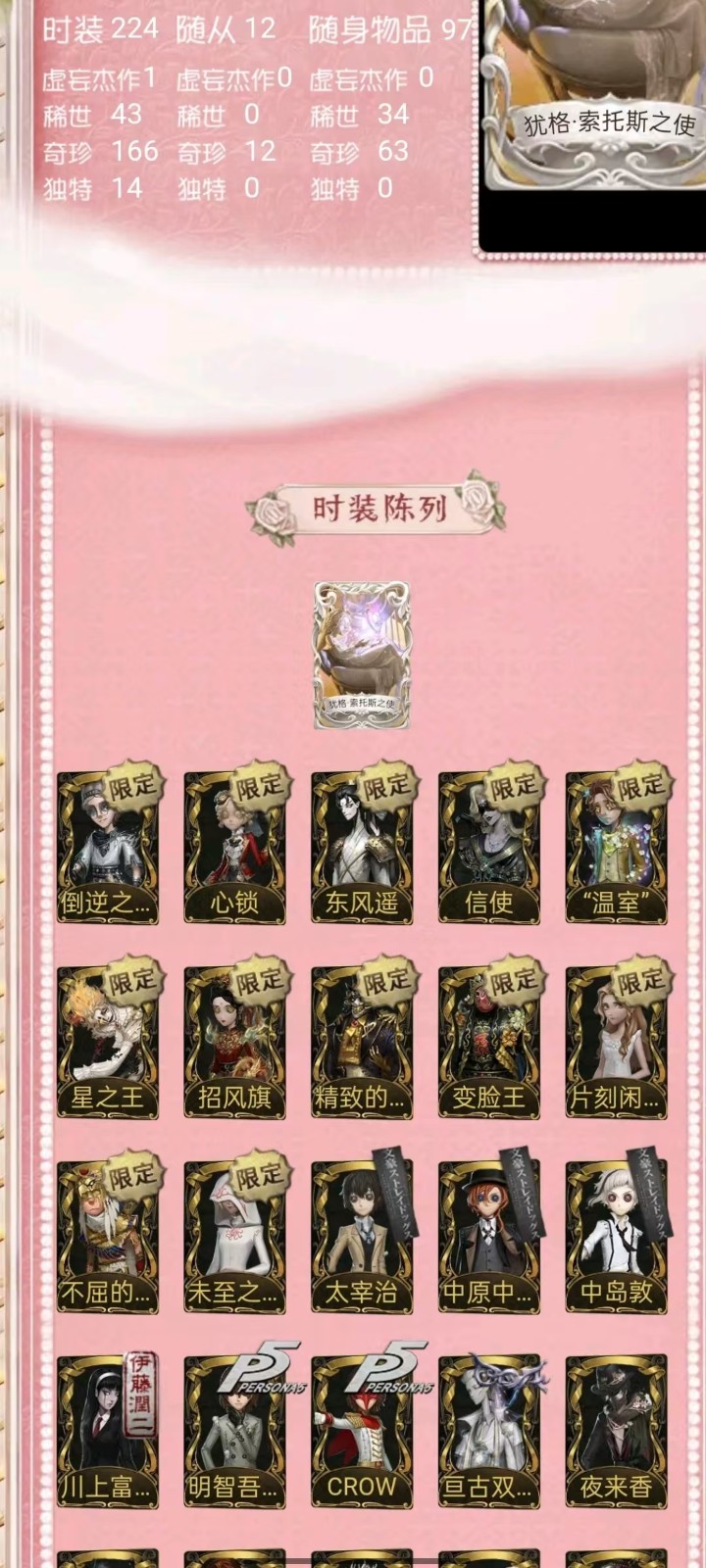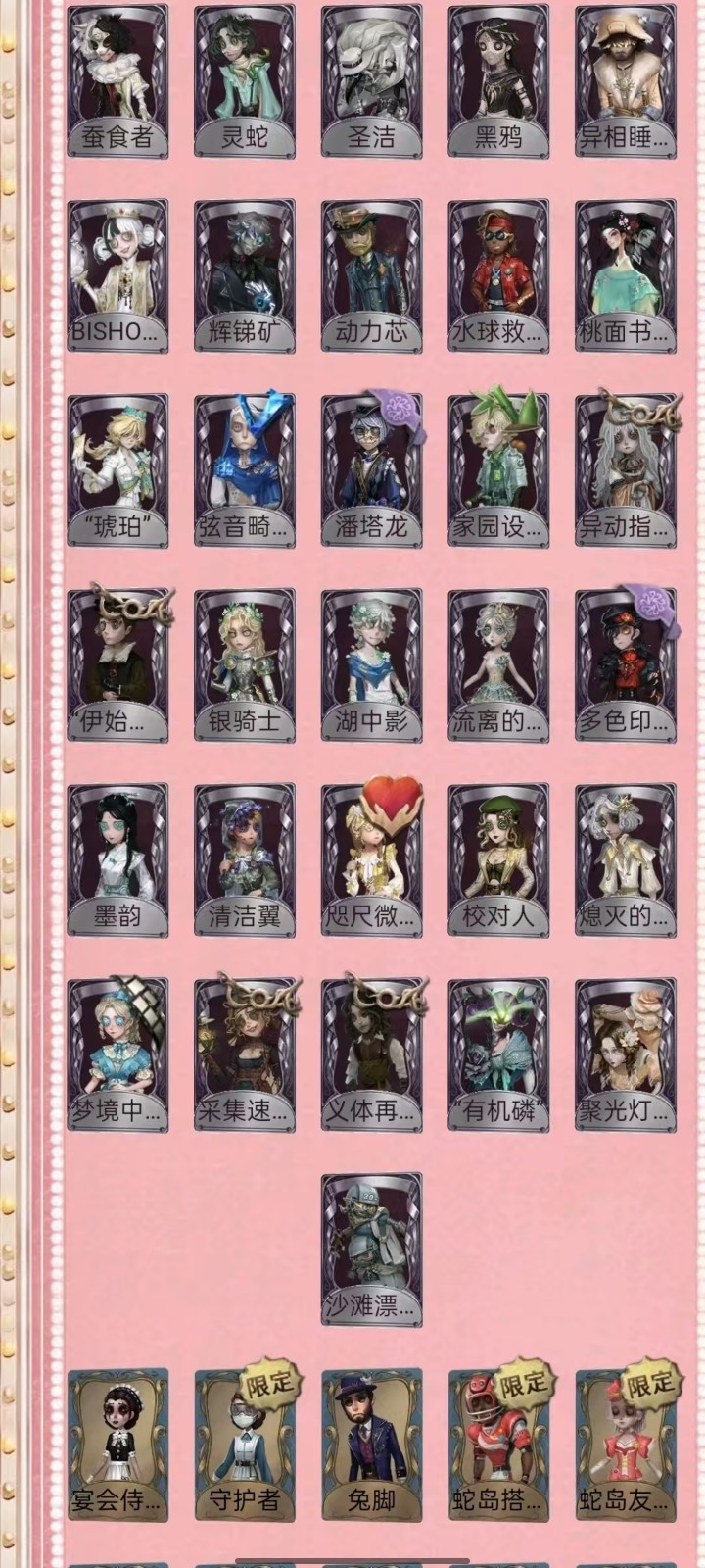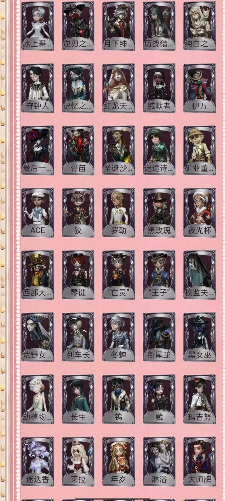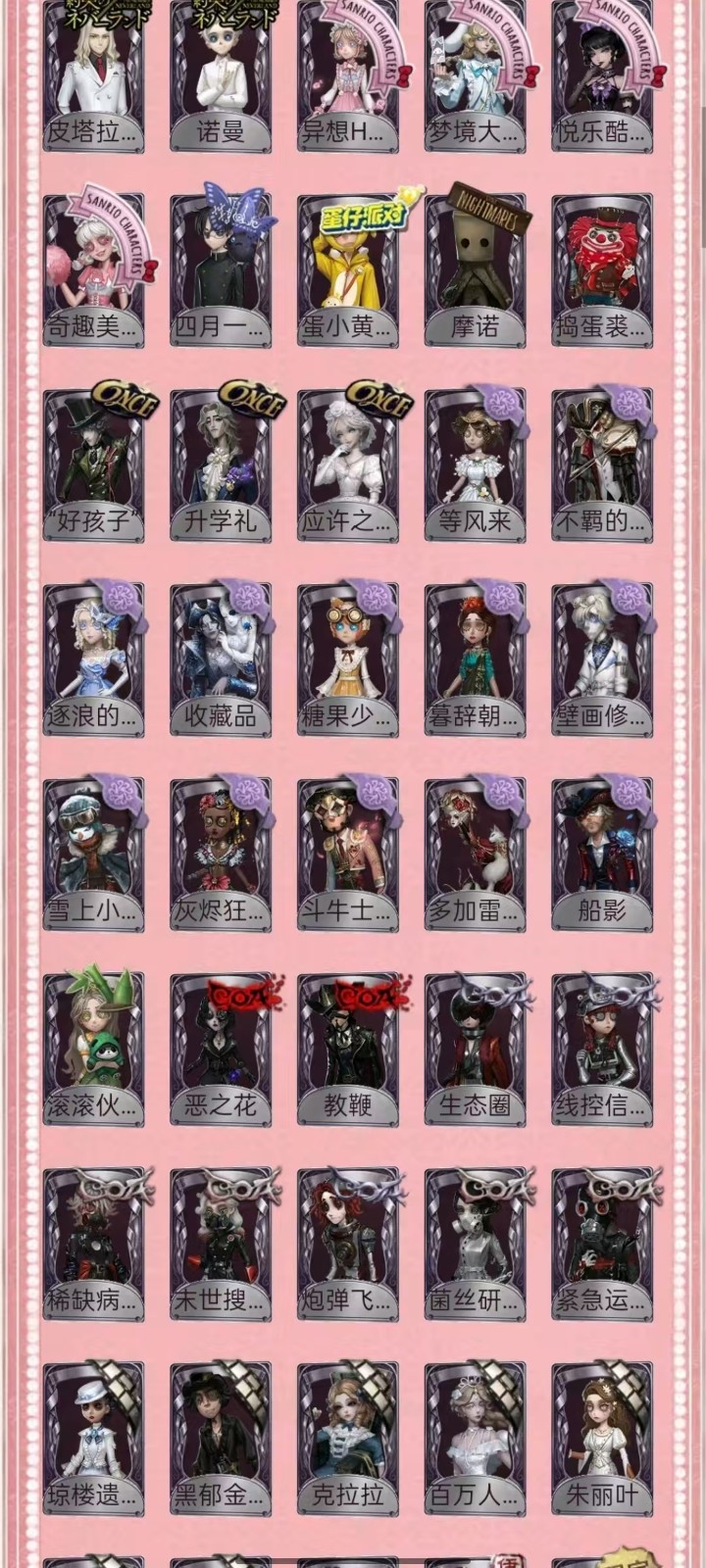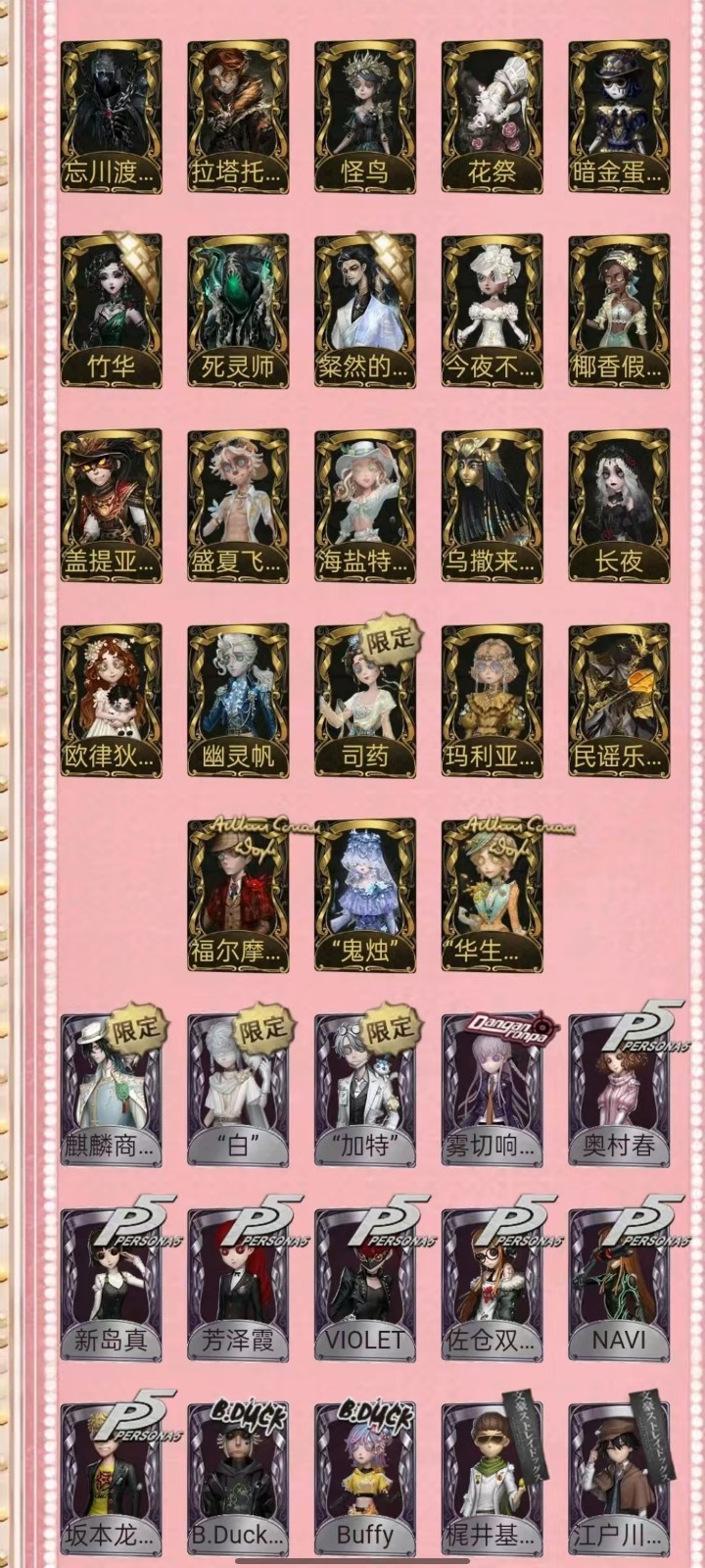 宿伞中大情红玫瑰/金靴/文野太宰套/中岛敦套/中野套,福尔摩斯归宿已装修 租号必看,开挂必报警 恶意毁号必报警 报警报警报警报警报警报警报警报警报警报警报警报警报警报警!!!! 1-挂机封号必报警处理 挂机封号损失 查ip 报警处理 禁止使用外挂,此帐号非账号问题不可撤单! 2-官方账号密码直接登陆,禁止游戏内刷喇叭说卖号骗人,抓一次直接报警, 禁止开挂,本账号经过网络财产备案,一直发现直接报警处理不会登陆的租客请下载 taptap 找第五人格下载游戏 3-账号财产价值很高,本店24小时在线,恶意投诉秒顶改密,直接拉黑,永久不让租 4-使用外挂,脚本等一切破坏游戏平衡,在平台提取实名ip(都是vzfb实名消费)直接立案追责,三倍赔偿账号价值 5-本店文明租号,你好我好大家都好。游戏本身就是消遣娱乐的地方,切勿消极对待,切勿以身试法,文明租号,快乐你我他。祝每个租客都有好心情,维护好环境。 6-游戏里任何东西都不要想着去破坏,试图解除二级密码的,一经发现直接拉黑。 7-游戏里涉及到任何钱财账号交易,一律不要相信,天上不会掉馅饼,如有财产损失,与本账号无关,文明租号。 犹格索托斯之使 I稀世时装 限定 限定 限定 倒逆之汞 心锁 东风遥 信使 “温室" 限定安丁限定 限定 限定 限 星之王 招风旗 精致的笑容 变王 片刻闲暇 不屈的信仰 未至之人 太宰治 中原中也 中岛敦 Px 川上富江 明智吾郎 CROW 亘古双星 夜来香 忘川渡人 拉塔托斯克 怪鸟 花祭 暗金蛋糕 竹华 死灵师 轻然的北辰 今夜不再 椰香假日 盖提亚之遗 盛夏飞盘 海盐特调 乌撒来客 长夜 限定 欧律狄刻 幽灵帆 司药 玛利亚公理 民谣乐手 福尔摩斯 "鬼烛" “华生小姐” 麒麟商人 “白” “加特” 雾切响子 奥村春 P 新岛真 芳泽霞 VIOLET 佐仓双叶 NAVI B.DUC 坂本龙司 B.Duck潮泪 Buffy 椐并基次郎 江户川乱步 皮塔拉托里 诺员 异想Hello Kitty 梦境大耳狗 悦乐酷洛米 圣仔底对 奇趣美乐蒂 四月一日君寻 到小黄的好朋友 摩诺 捣蛋裘克 “好孩子” 升学礼 应许之日 等风来 不罪的浪浸 逐浪的玫瑰 收藏品 糖果少女 暮辞朝归 壁国修复员 雪上小王子 灰烬狂想 斗牛士之吻 多加雷萨 船影 滚滚伙伴 恶之花 教鞭 生态园 线控信号 稀缺病案 末世搜救 炮弹飞船 菌丝研究 紧急运输 琼楼遗恨 黑郁金香 克拉拉 百万人鱼 朱丽叶 限定 桃乐丝 隐形人 绿纹大触 双一 海盗巫医 光天使 永生花 白兔先生 领头羊 传信官 限定 镏金铜鹿 蓝调阿拉J 光学镜面 白胡子 爱丽丝 出 中里的龟先生 弹簧手 思明 白鹰之舞 “阿拉丁 限定 怀古 苏珊娜” 万能钥匙 纸心 金靴 情懒的免先生 光织守护 音波 紫孔雀 仙鹤 R 祈雨之女 硫火 克朗普斯 十字路口的美少年 安魂曲 残花泪 箭竹 日月相随 程小时8陆光 神圣之辉 冰上舞蹈 逆刃之鞭 月下绅士 历战猎人 纯白之盐 守钟人 记忆之骑 红龙夫人 缄默者 伊万 最后一舞 骨笛 圣诞沙龙 迷途诗人 矿业董事 ACE 狡 罗勒 黑玫瑰 夜光杯 西部大亨 琴键 “亡灵” “王子” 校监夫人 荒野女巫 列车长 冬蝉 衔尾蛇 黑女巫 动植物学教援 长生 钨 藏 玛吉努 迷迭香 莱拉 年岁 淋浴 大师牌 蚕食者 灵蛇 圣洁 黑鸦 异相睡眠 BISHOP-f1 辉锑矿 动力芯 水球救生 桃面书生 “琥珀” 弦音畸变 潘塔龙 家园设计师 异动指针 “伊始新筒” 银骑士 湖中影 流离的月光 多色印刷 墨韵 清洁翼 咫尺微光 校对人 熄灭的太阳 梦境中的爱丽丝 采集速巡 义体再构 “有机磷” 聚光灯下 20 沙滩漂移 宴会侍女 守护者 兔脚 蛇鸟搭档 蛇岛友人 黑钨 麻雀 秋枫制服 宴会管家 与月生 限定 未知的“来客 克洛维斯 罗森伙伴 维金斯 诅咒黑云 涅粲 玫瑰之下 逆转之战 呼唤. 猎人的箭囊 致命的邀请函 唤潮 .魔典 见证 虎尾 太宰的爱书 葡萄酒 报时鸟 调制架 “非易碎品” 茅龙书 噬魂 完美人偶 厌离 荣光的残像 星云瓶 "光明” 遗忘之花 进化 得 “重生" 发条蝴蝶 转位 玉麒麟 最后的故事 至识之眼 折柳. 毁誉之印 绝境航船. 奇珍随身物品 玫瑰手杖 针线包 迷你锤 星见 尼古拉斯的遗嘱 黑胶碟 逐香尘 玫瑰手杖(蓝) 四叶符 星星糖 斗牛布 不焚之羽 星彖仪 催眠仪 鹰羽 束缚之心 科学的艺术 纯银子弹 日与月 零钱碗 班苏里笛 海底遗物 荒诞之令 密码筒 白泽玉 西洋镜 乾坤袋 手机 尖叫潘笛 舞会彩球 地层石蛋 火火火 未奏的乐章 案件模拟 协律 电掣 旧日征帆 沙滩镜 遥控器 回旋镖 迅捷如风 全冰饮料 皮纳塔 日晷密钥. 漂浮 .. 凝固的声音 夜星 欢呼 笔尖柔情 介壳虫 巨人风车 "全熟” 余兴 茶话时间. 糖果鬼 入梦枕 皮鞭 时序 邪火令 法典 活化音响 纠缠 福尔摩斯冒险史 [大厅]尘封的事务所 [大厅]迷雾山庄 [大厅]贝克街221B I典藏乐曲 [家具]最后的游戏 [家具]弦乐 [家具]破碎的镜子 [家具]好奇屋 [家具]推理 [家具]畸形椅